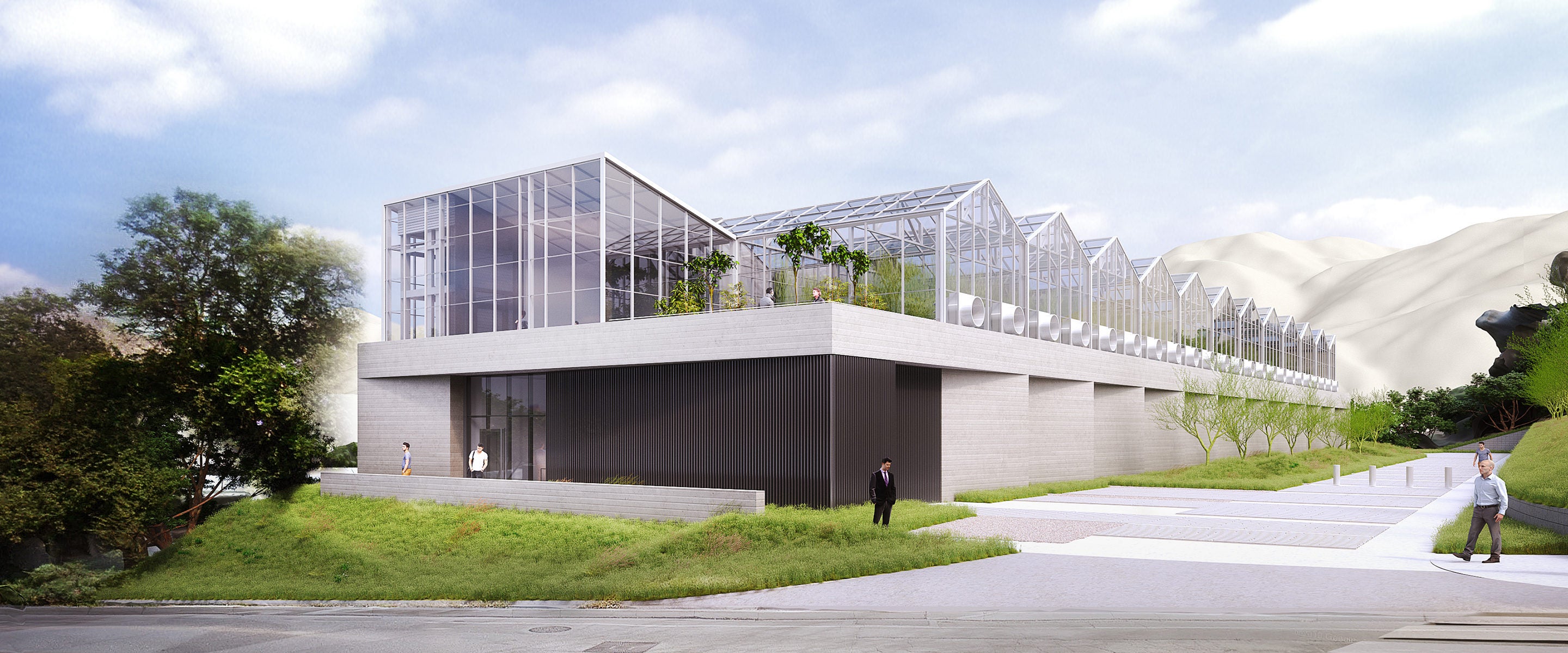 The bottom half of the building features concrete walls, while the greenhouse will be built with double-layered clear glass.