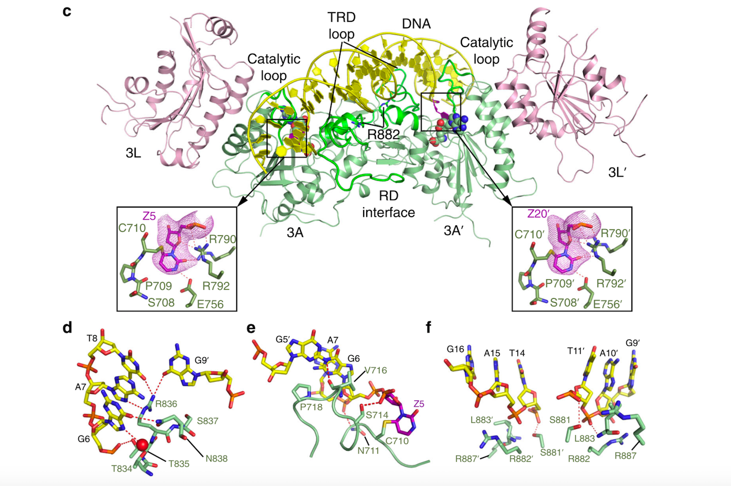 DNA methylation is a process involving the transfer of methyl groups to the DNA molecule, which critically influences gene expression, genomic stability and cell differentiation. Mutations of DNMT3A have been linked to a variety of diseases, such as acute myeloid leukemia, or AML, and overgrowth syndrome.