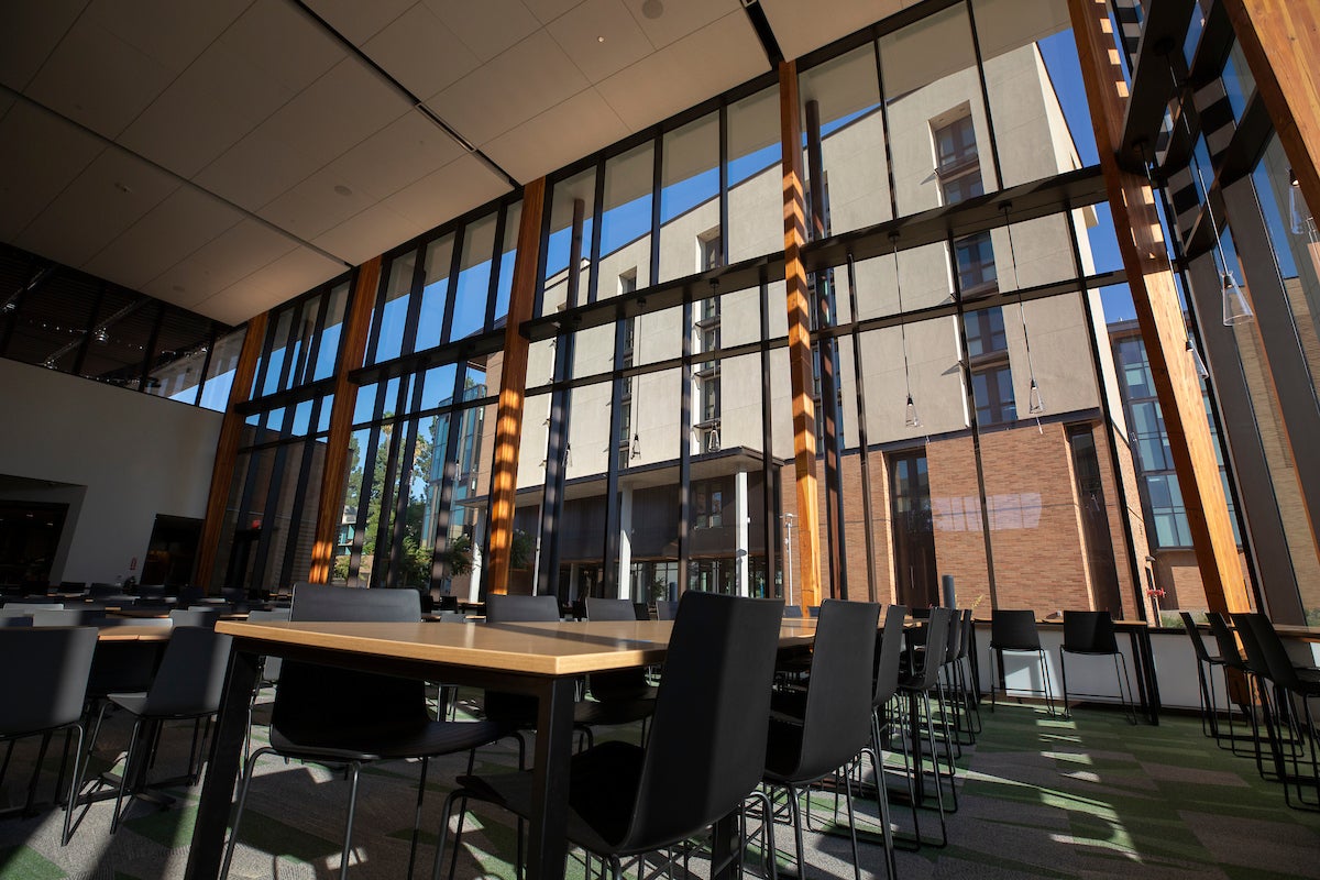 Glasgow has four food stations where students can order food, two private dining rooms, an exhibition bakery, outdoor terrace, and a Scotty’s retail store near the entrance.