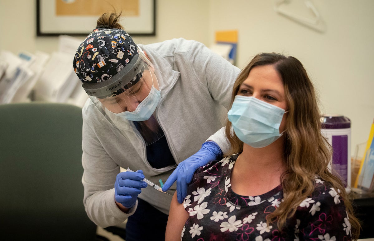 UC Riverside has vaccinated 100 frontline health care workers at Student Health Services for the virus that causes COVID-19 in the first on-campus vaccine distribution.
