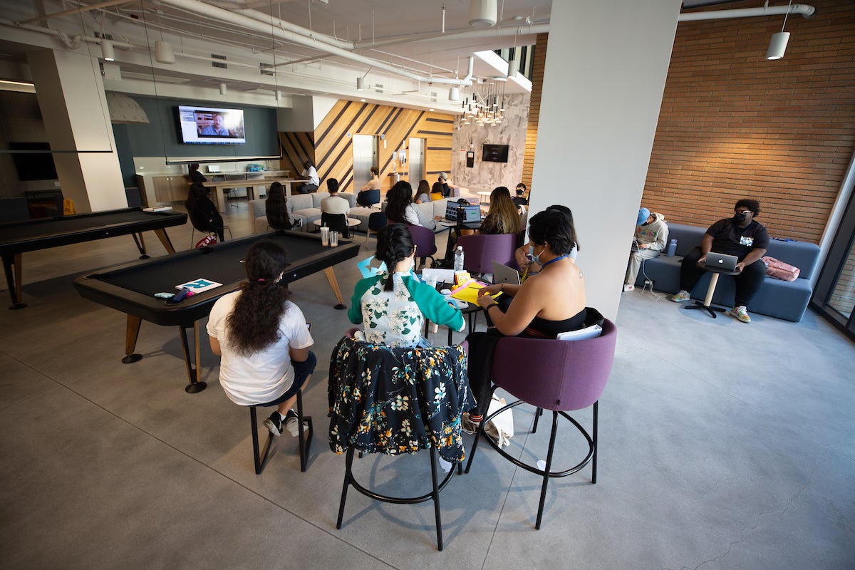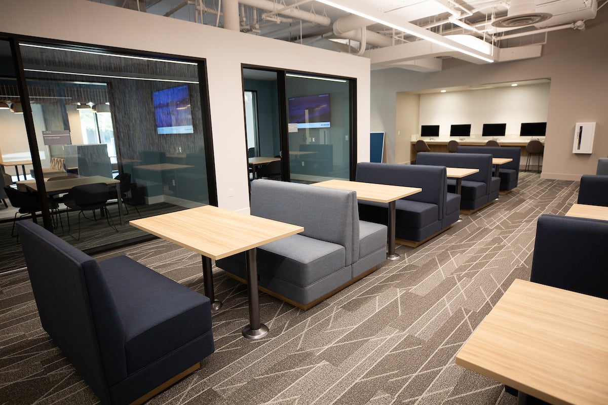 The buildings, referred to as “A” and “B”, come with a fitness center, laundry rooms, study areas, classrooms, and a multipurpose room. A dining venue, the Market at North District, will open with a convenience store and will soon offer hot entrees, coffee, boba, and ice cream.