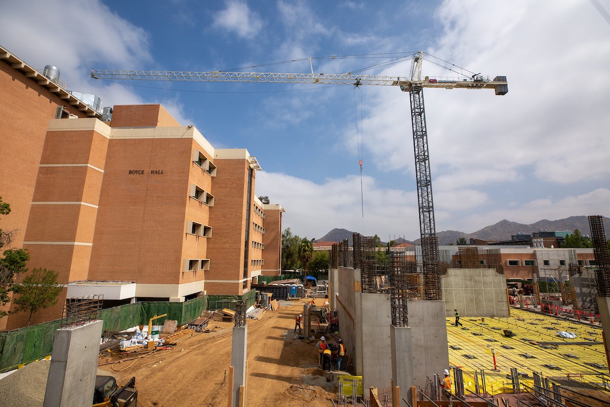 “The construction team has been working very hard to get the building out of the ground, but everything is rapidly progressing now that we are working on the vertical elements of the structure,” said Mihai Gavan, a senior project manager with UCR’s Planning, Design, and Construction department. “It is very exciting to see how the building changes every day.”
