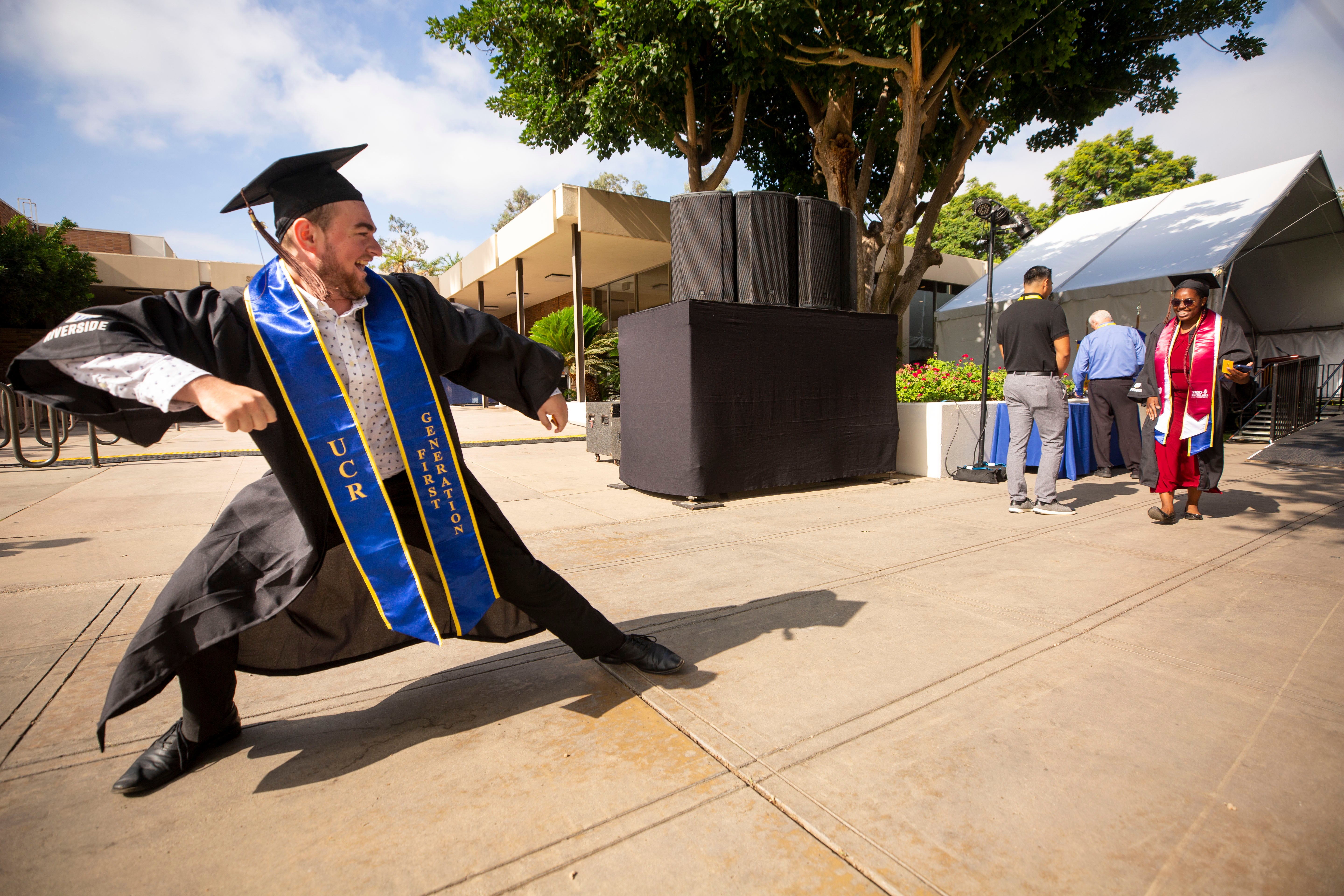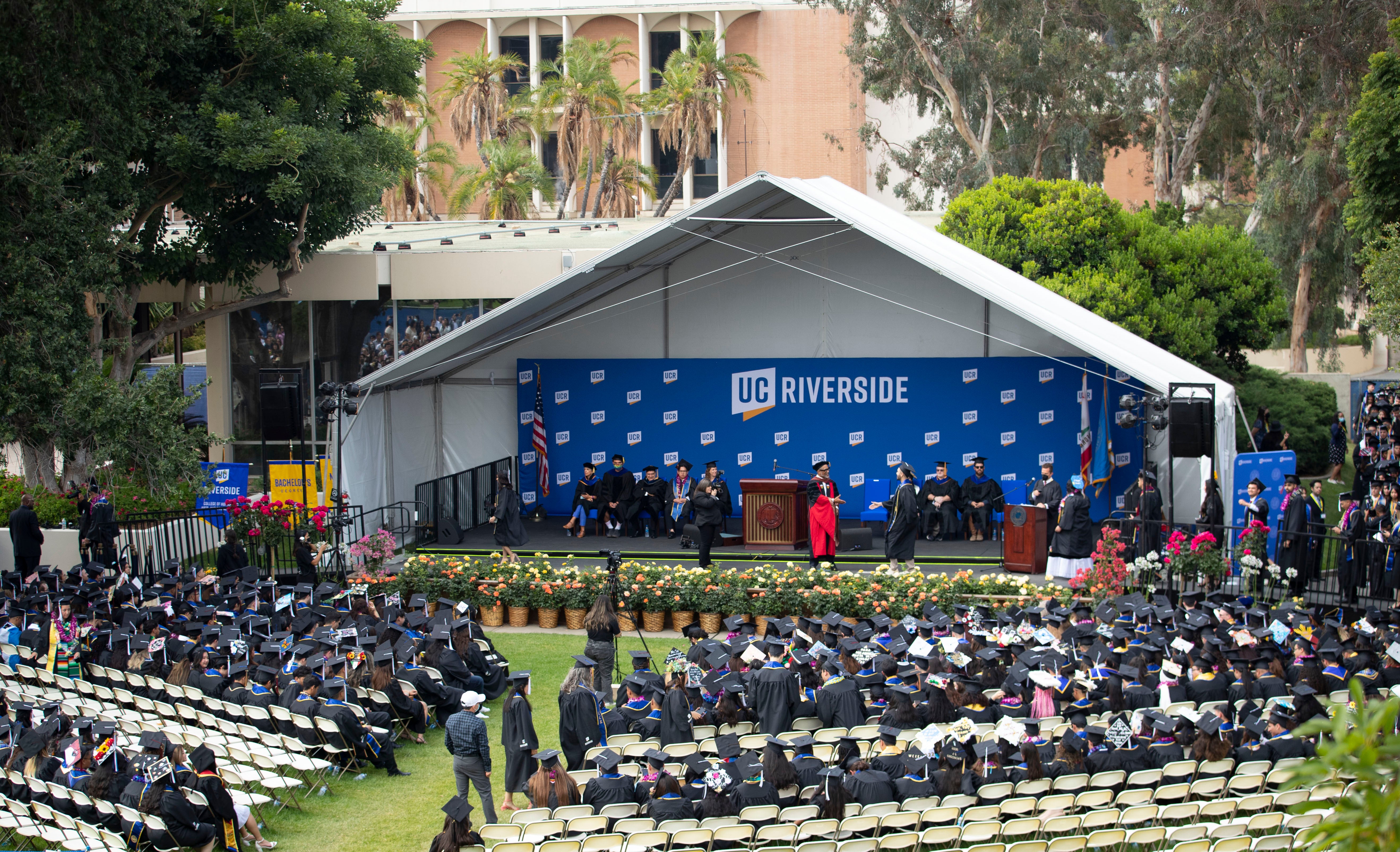 The ceremonies began Friday, June 3, and concluded Monday, June 13. A total of 7,272 students were eligible to graduate. That included 1,117 students in the School of Business, 420 in the School of Education, 1,006 in the Marlan and Rosemary Bourns College of Engineering, 2,808 in the College of Humanities, Arts, and Social Sciences, 1,682 in the College of Natural and Agricultural Sciences, 81 in the School of Medicine and 158 in the School of Public Policy.