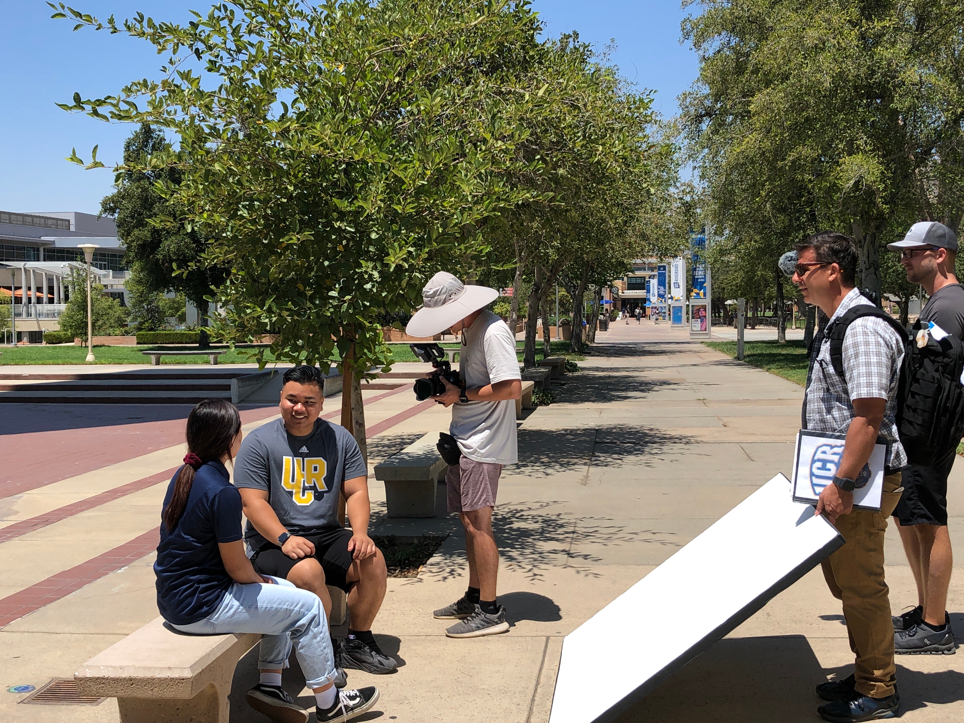 Others profiled include international students, a student who was in the foster youth system, a transfer student, and one involved in student government. Each segment was filmed at a different location including Tomás Rivera Library, the HUB, the Student Recreation Center, and various outdoor areas around campus.
