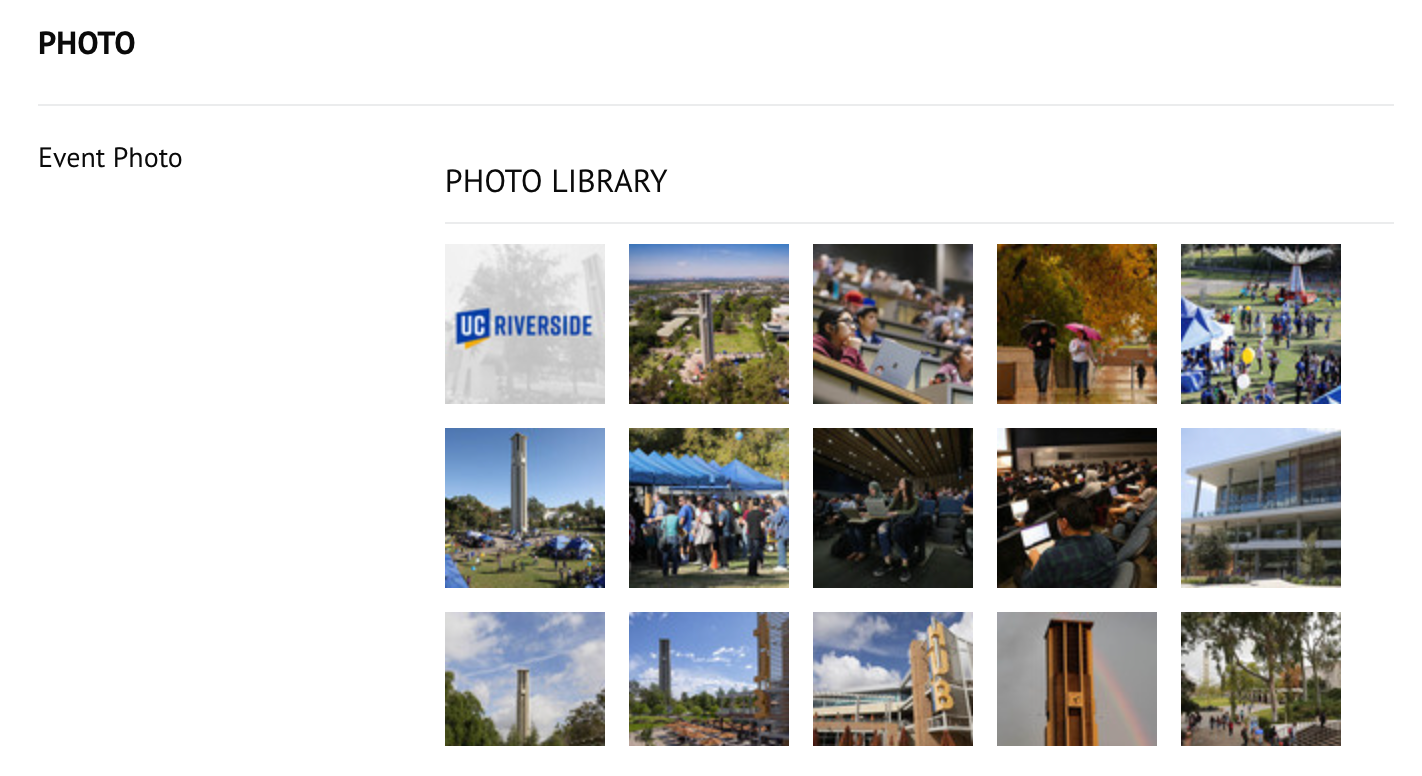 The UC Riverside events calendar has a new look that allows events to stand out with more prominent images.