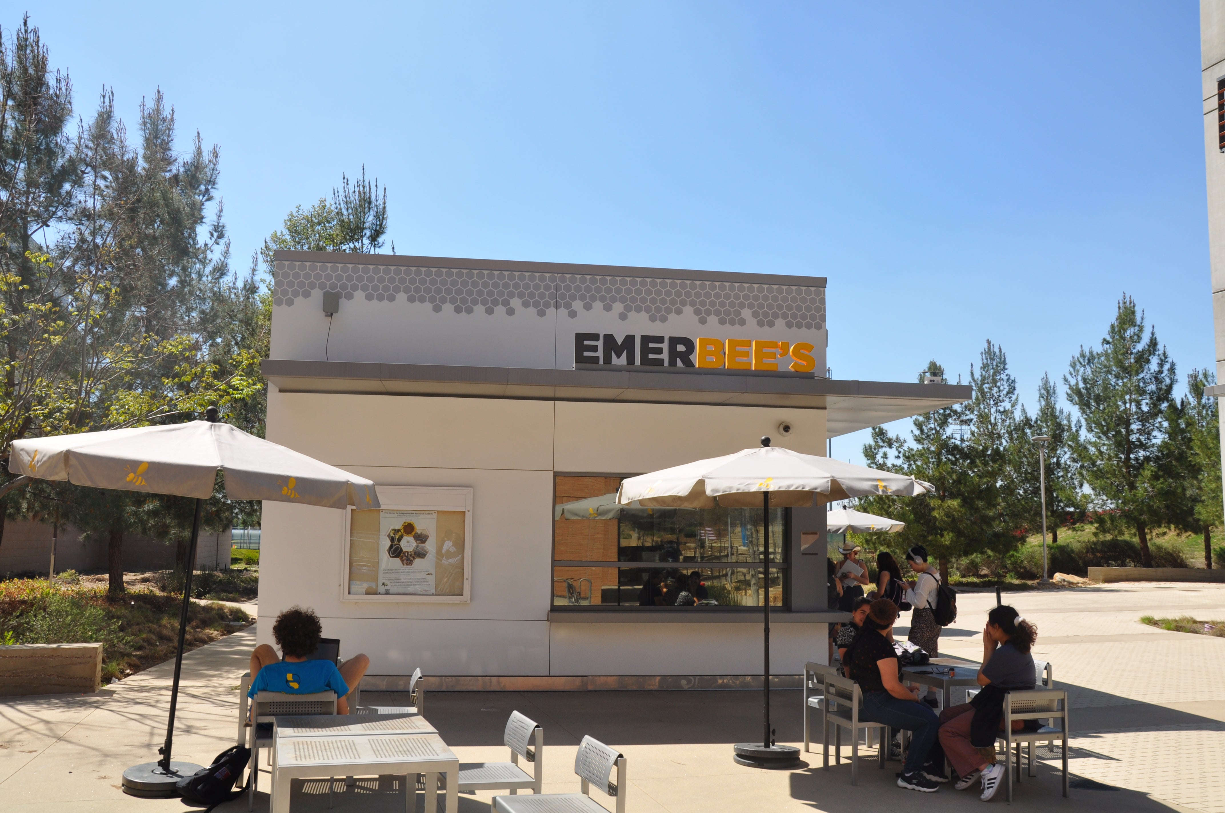 Its menu includes sandwiches, mac and cheese, noodle salad, and signature drinks infused with orange blossom honey produced in CIBER beehives on campus such as a honey cinnamon latte. It also serves Starbucks brand drinks.