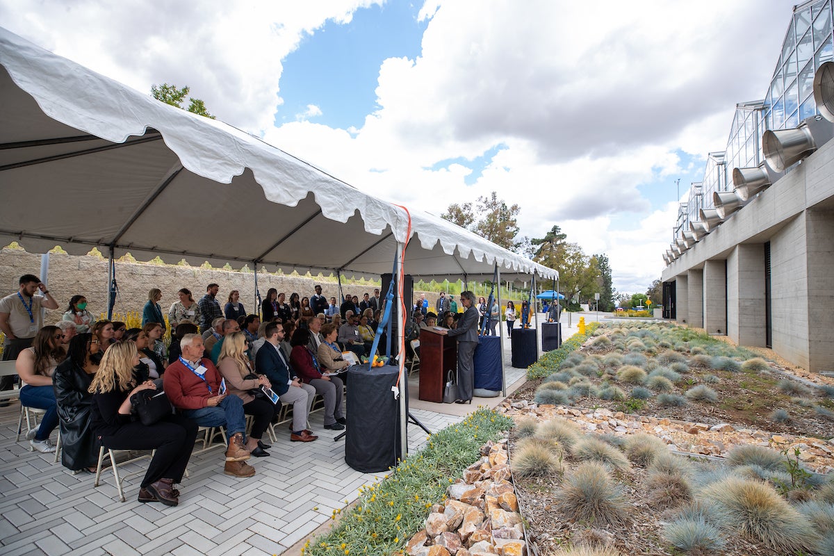 With its clear glass frame and the Box Springs Mountains in the background, the facility has already stood out on campus. The outside area features a desert landscape look with cacti, rocks, and daisies.