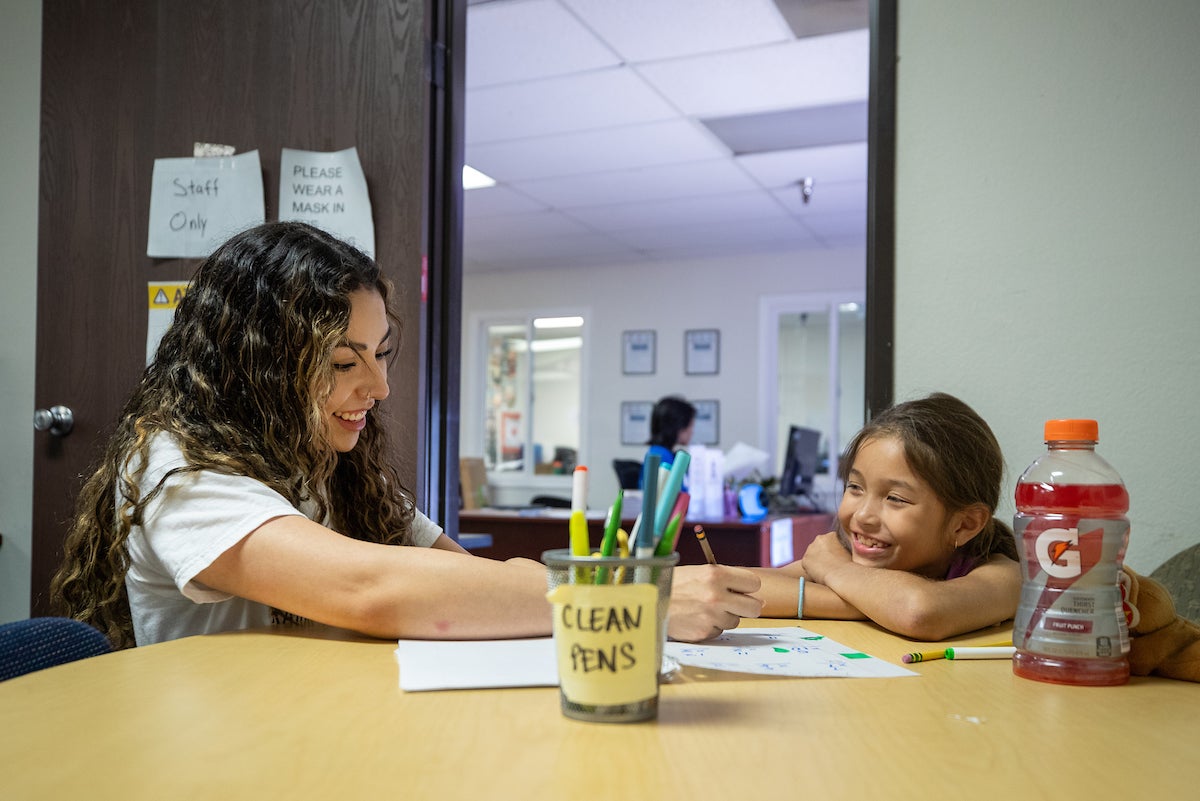 The students usually arrive at Raincross around 4:30 p.m. They’re assigned an hour of school work, often reading or math. Tutors like Veliz also assist with homework.