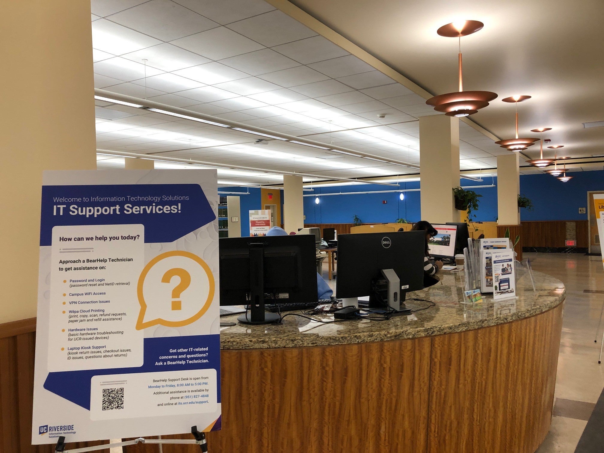 Finding in-person help from UC Riverside’s BearHelp team is easier than ever with a new program stationing technicians at the two campus libraries.
