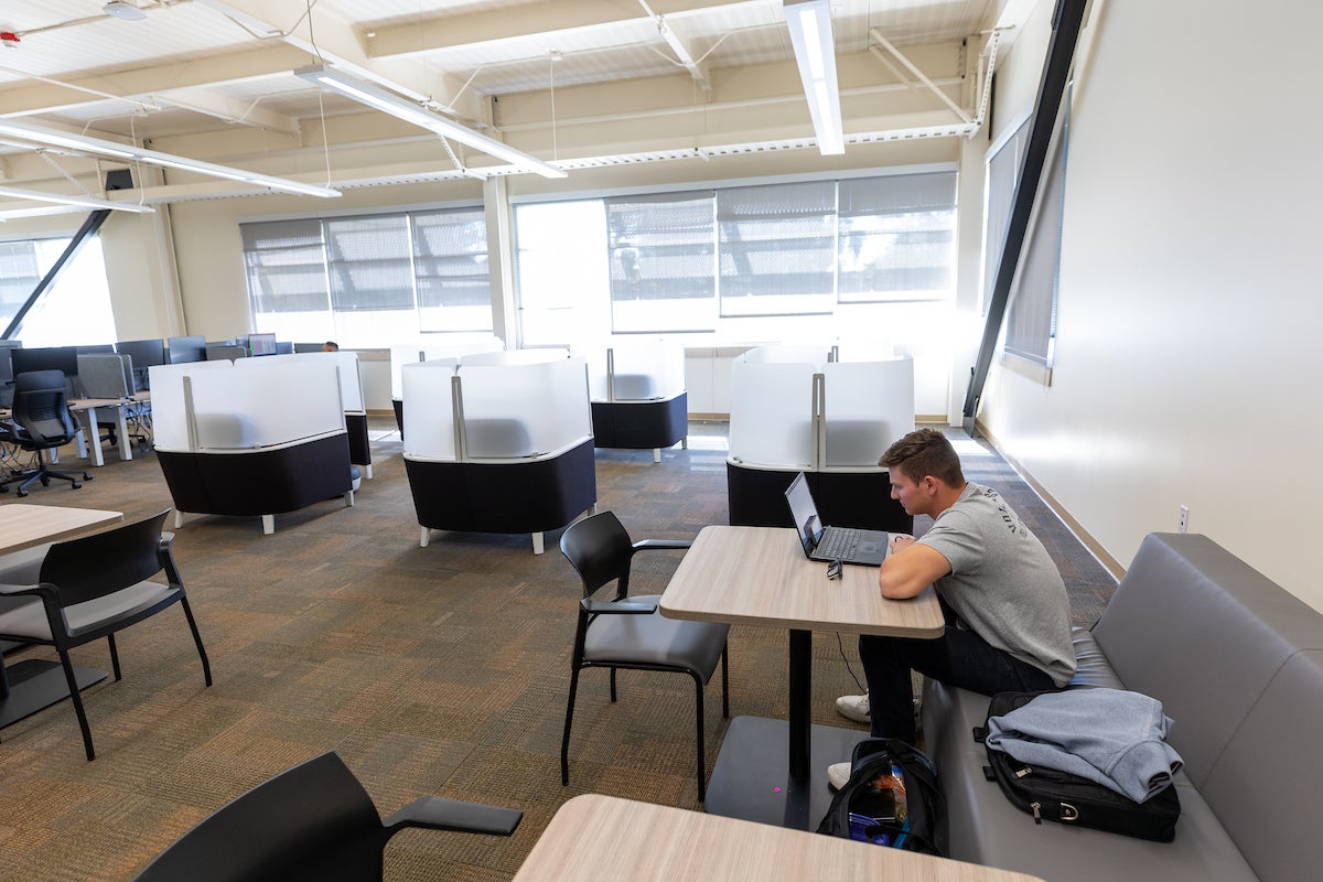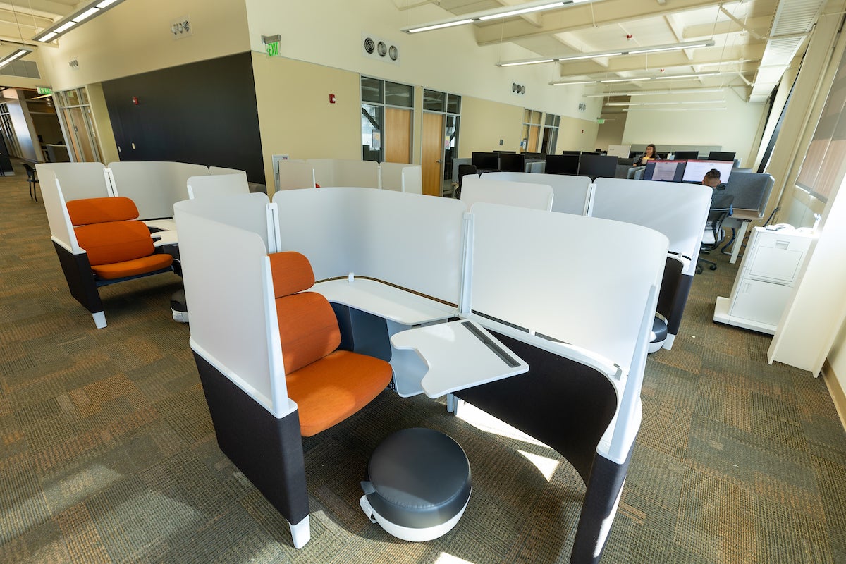 The most visible changes in space design are on the third floor of Student Services, where the campus has gone all-in on shared workspaces. The project could be a pilot for future space adjustments, said Gerry Bomotti, vice chancellor and chief financial officer.