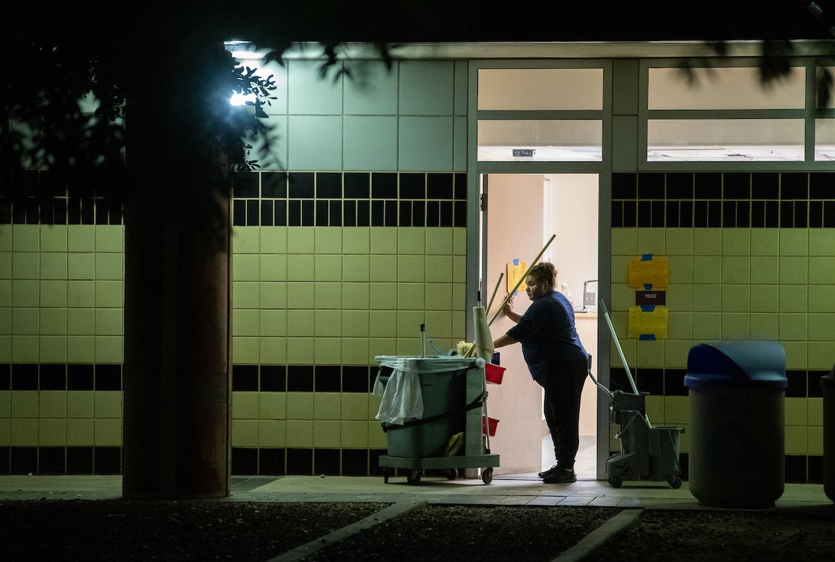 Salvador Cardenas, a custodial supervisor, oversees a specialized six-person floor care team who work nights and weekends deep cleaning carpets and waxing floors.