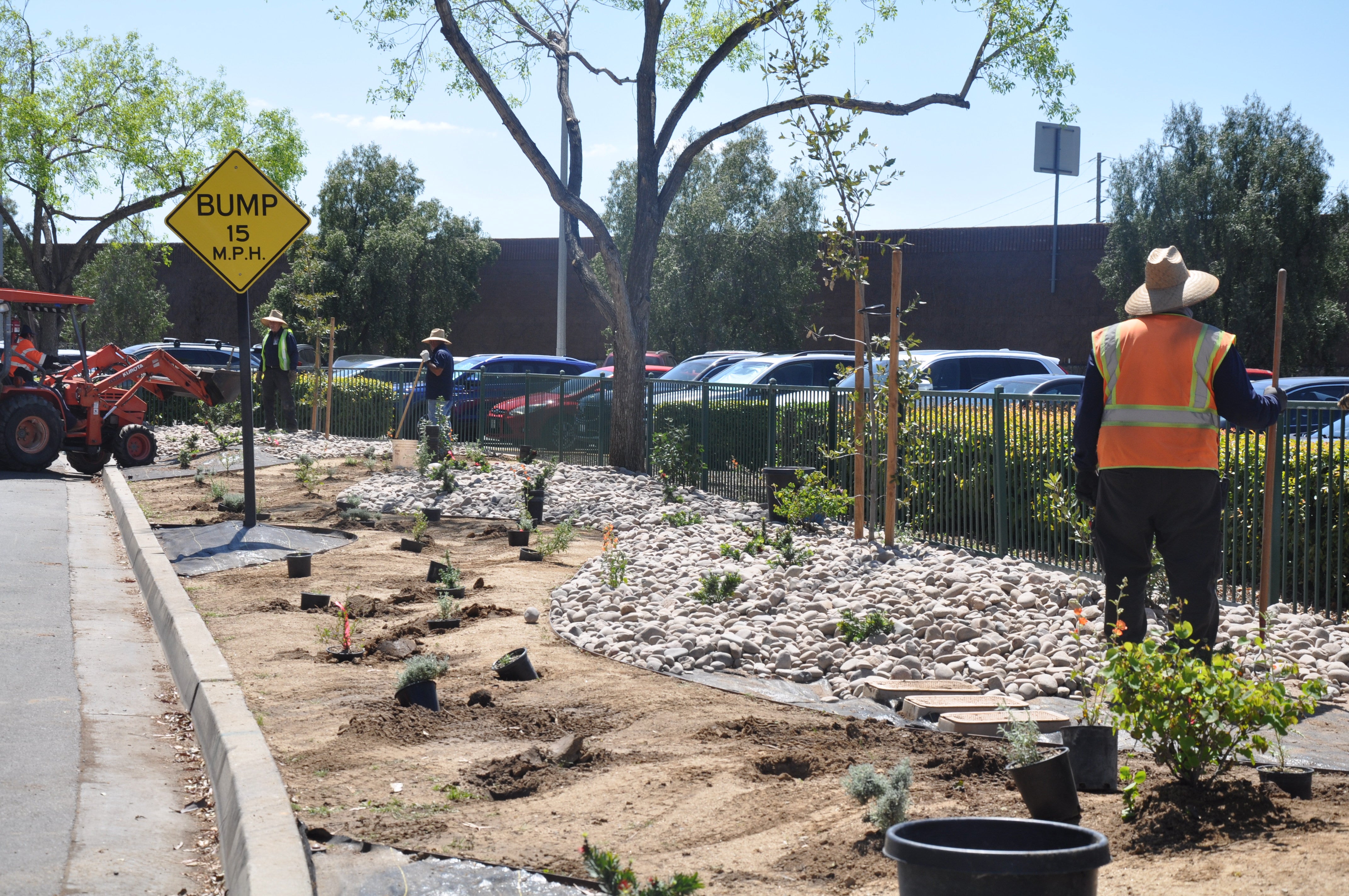 The new plants and trees are native to California and create a habitat friendly to pollinators like hummingbirds, honeybees, and bumble bees, he said. They include Engelman Oak trees, Desert Mallow shrubs, California Fuschia, and Concha Wild Lilac.