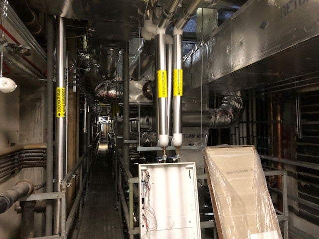 The building roof was replaced and two large air handlers, the size of jet engines, were installed as part of the exhaust and ventilation system.