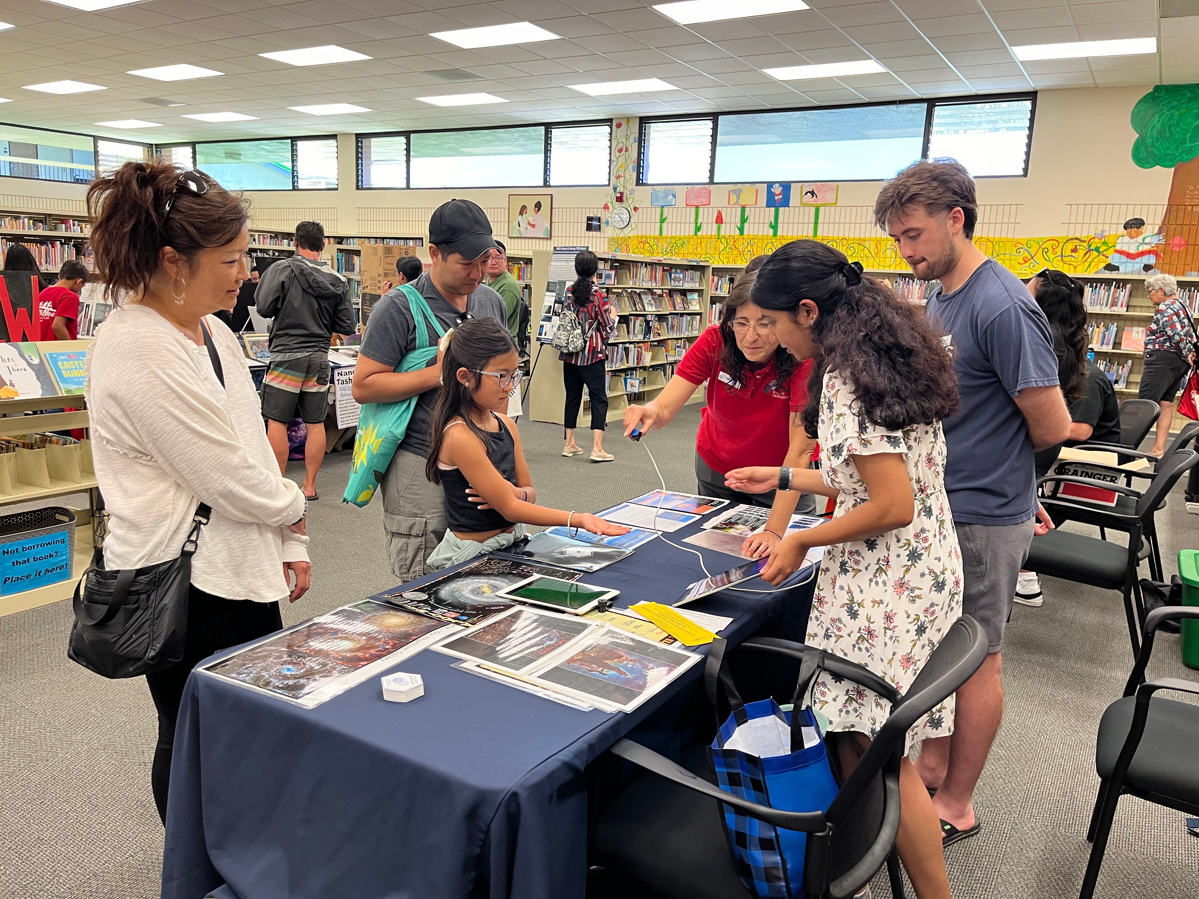 More than 300 children — from toddlers to teenagers — and adults attended AstroBash, a NASA@My Library event organized by the Thelma Parker Memorial Public Library. Canalizo’s team volunteered for the astronomy celebration as part of the Pilina and Kōkua Initiative, a collaboration between Keck Observatory in Hawaiʻi, Caltech Optical Observatories, and the University of California Observatories, to cultivate a deeper connection to Hawaiʻi Island. Called “The Magic of Infrared,” the hands-on activity that Canalizo and her students put together captured everyone’s attention.