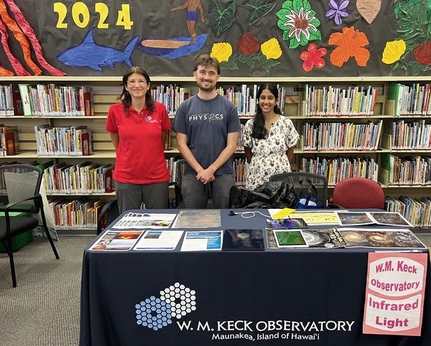 “We participated at the AstroBash in Waimea, a four-hour outreach event, where several groups had exhibits about telescopes or astronomy,” said Gabriela Canalizo, a professor of physics and astronomy at UCR, who attended the outreach event along with her graduate students Michael McDonald and Archana Aravindan. “We were representing the W. M. Keck Observatory, and we had an infrared demo for the audience. We love doing such outreach and value the importance of having good relationships with the community in Hawaiʻi.”