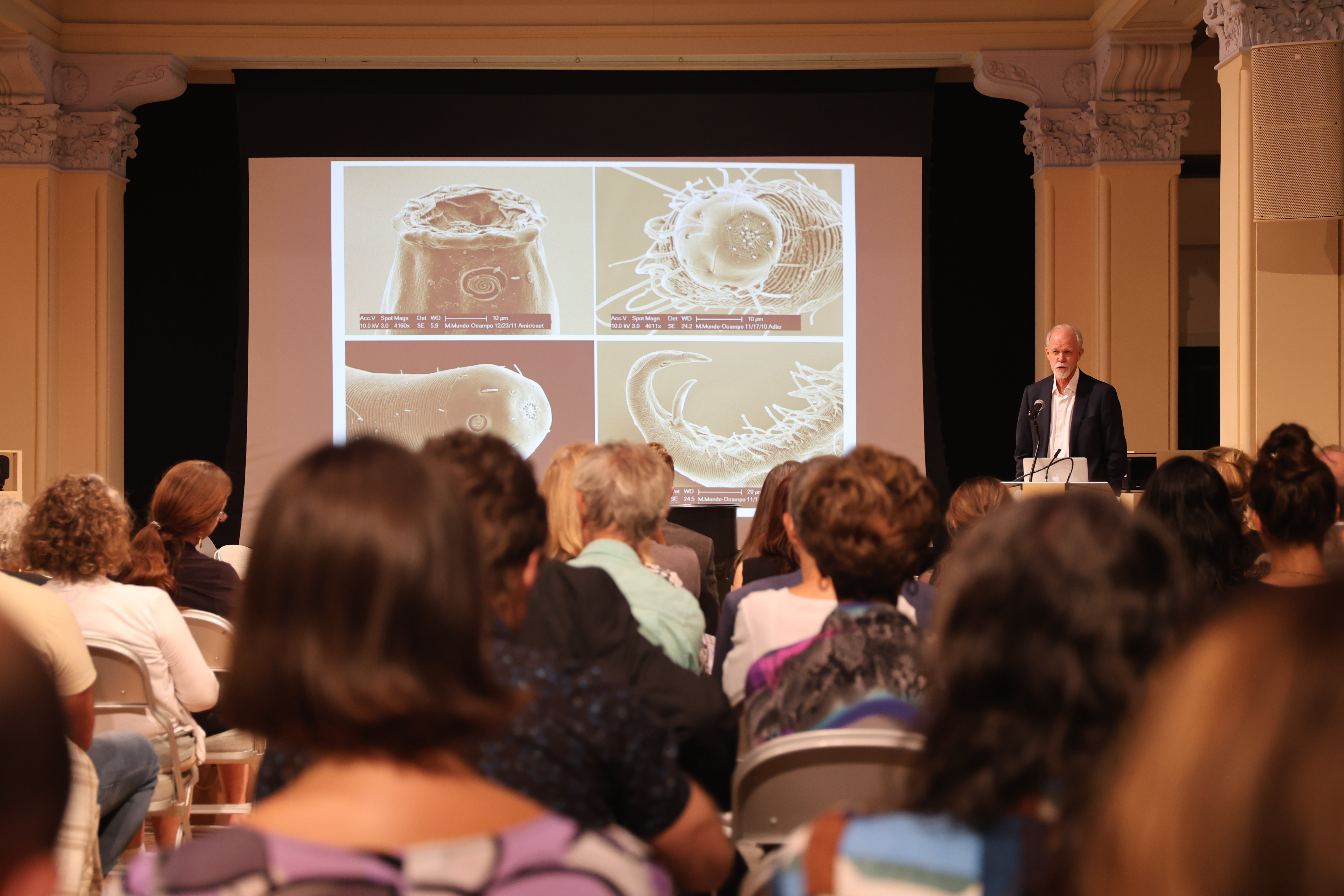 Presenters included College of Natural and Agricultural Sciences Dean Peter Atkinson and Adler Dillman, chair of UCR’s Department of Nematology, who displayed images of various nematode species.
