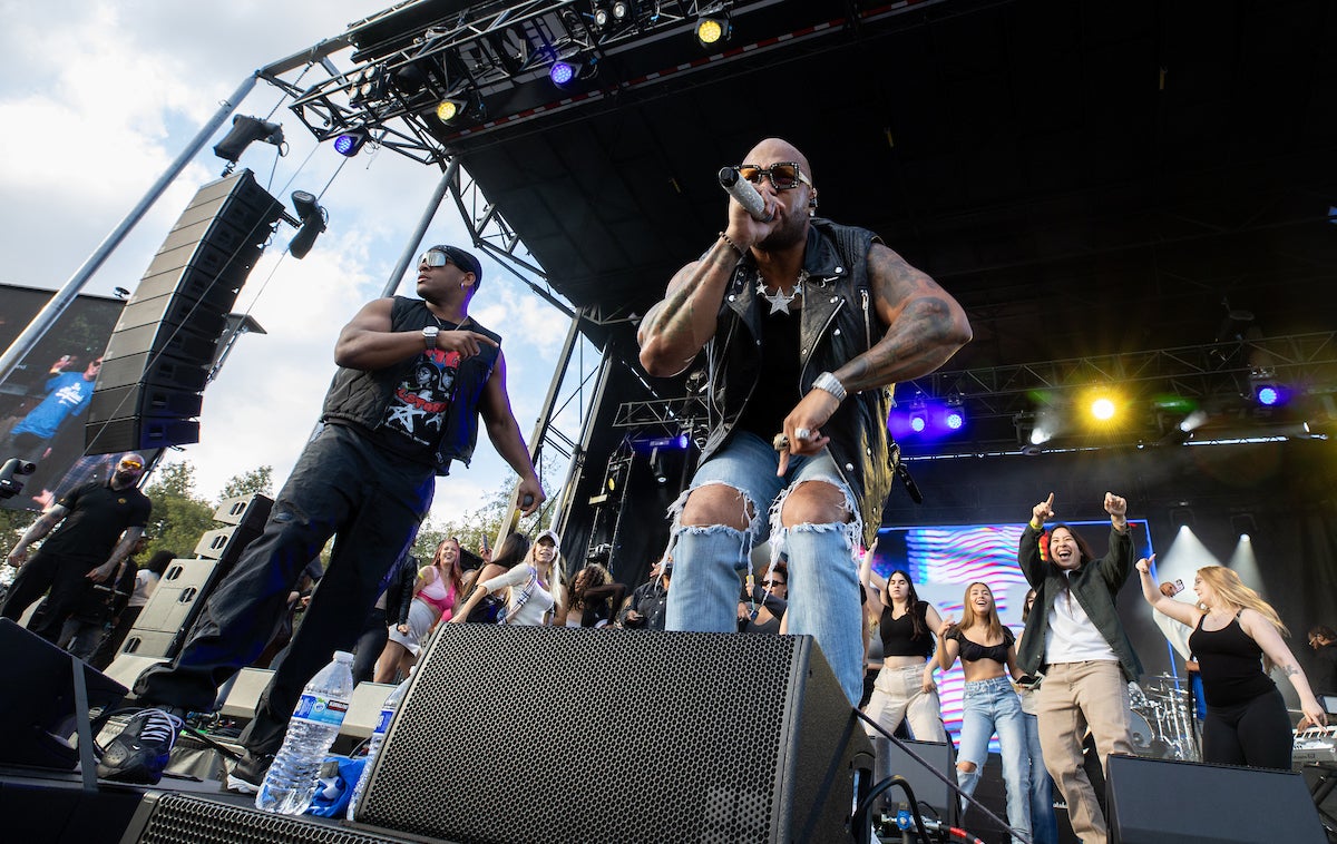 Performing before a packed crowd on Saturday, Nov. 2, Flo Rida encouraged Highlanders to get “Low” and spread “Good Feelings” with an energetic set that included those and other signatures hits. Wearing a UCR jersey at one point, Flo Rida invited fans to the stage to sing and dance with him and went down onto the lawn for part of the performance. He sprayed champagne and passed out roses and his autographed Nikes to fans.