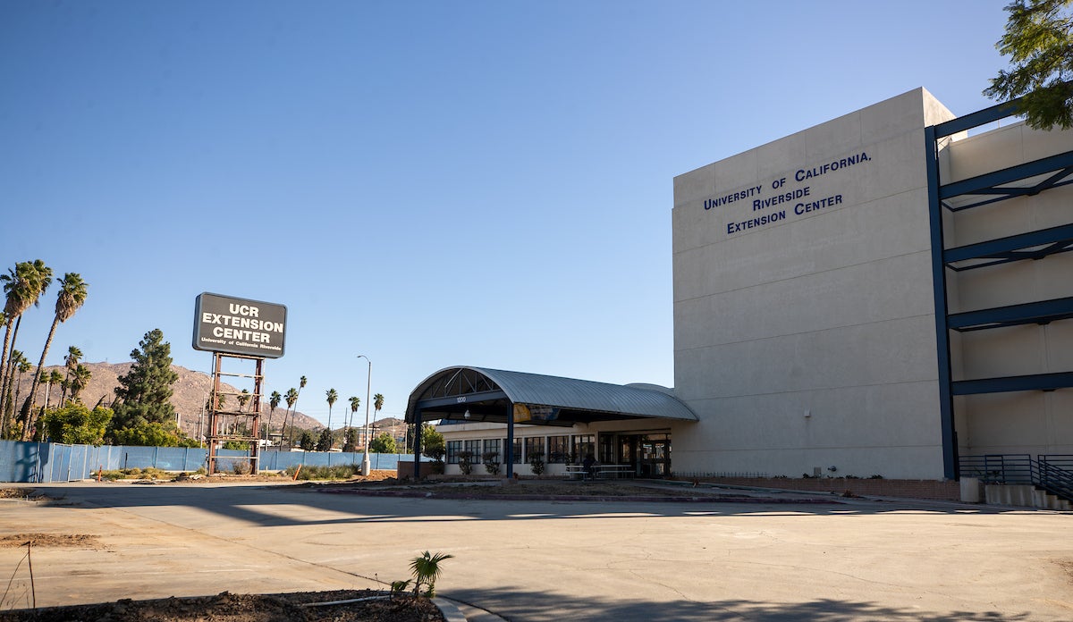 The old UC Riverside Extension building is coming down to make way for a new clean technology park.