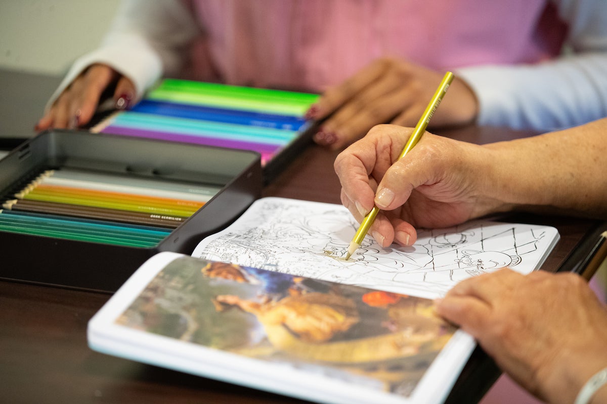 “I see painting as a therapeutic tool, and if it’s incorporated into a structured routine in a medical context, it can become an effective form of therapy,” she said. “My own approach has been simple: There’s no set style or medium; we offer paints, pens, as well as coloring books. Most participants tend to choose the coloring books because they find them easy to use consistently. This project has been so fulfilling that I am interested in trying this therapy next with pediatric populations.”
