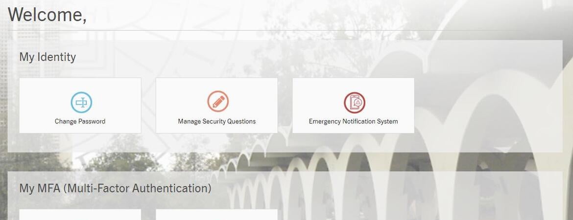 Once the user has enrolled in MFA, their MyAccount homepage will update to show a “Manage Mobile Device(s)” card and a “Passcodes” card.