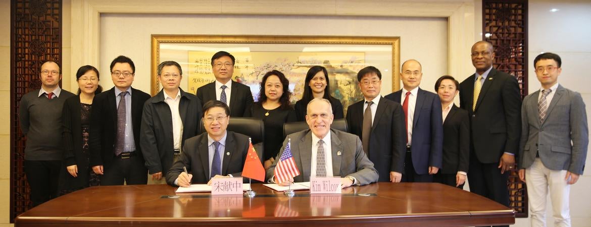 This spring, a University of California, Riverside delegation traveled 6,698 miles west to Guangzhou, Guangdong, and Anhui Province in eastern China to strengthen UCR’s relationships with the region’s top educators, researchers, and government officials. Across the Pacific Ocean, Chancellor Kim A. Wilcox and Kelechi Kalu, vice provost of International Affairs, led a group of UCR administrators and faculty from the Bourns College of Engineering (BCOE), College of Natural and Agricultural Sciences (CNAS), School of Business, and School of Medicine to meetings in Guangzhou and Anhui Province.