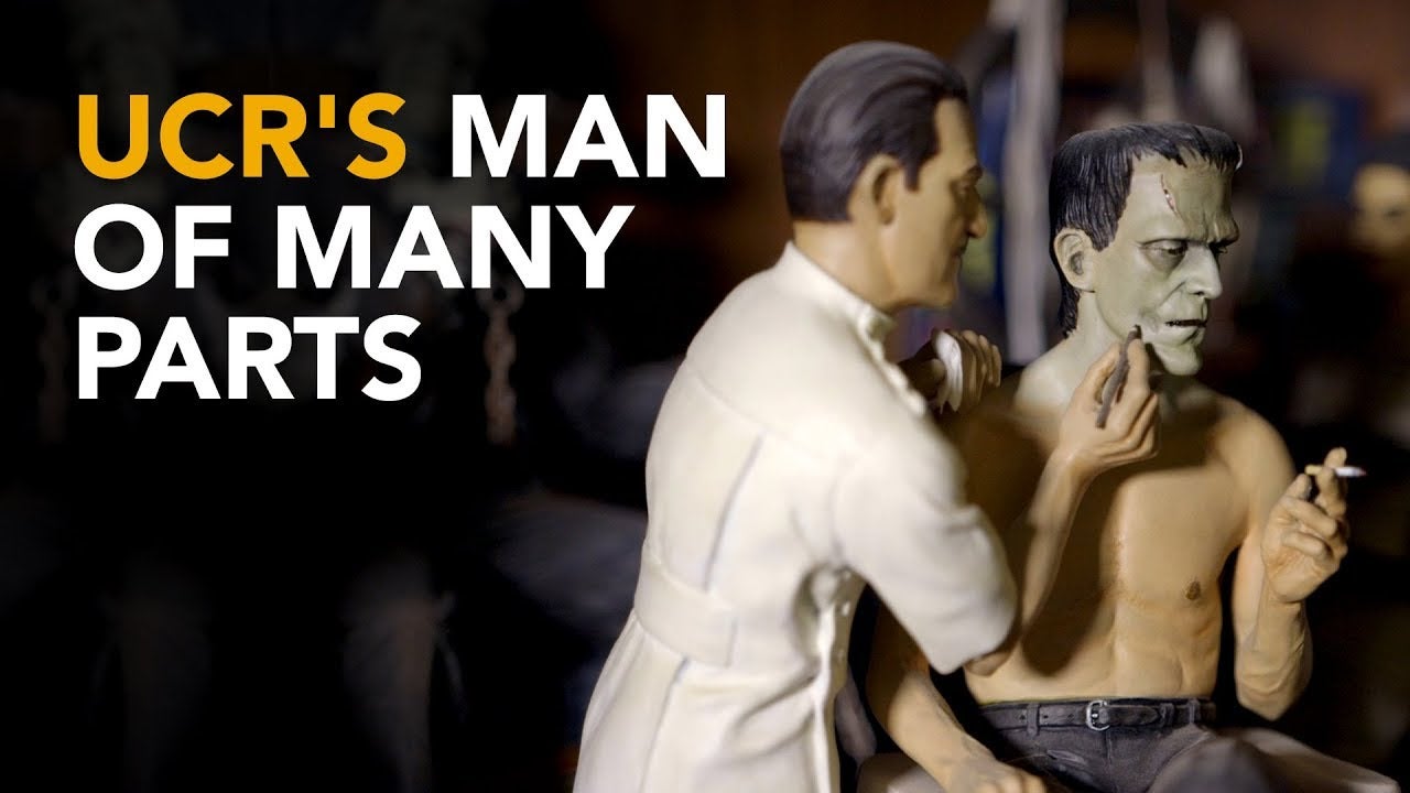 His science fiction creations and a selection of his collectibles will be on display in a special exhibit titled “Mark Glassy and Frankenstein: Men of Many Parts” at UC Riverside’s Tomás Rivera Library’s Special Collections and University Archives in honor of the 200thanniversary of Mary Shelley’s “Frankenstein.”