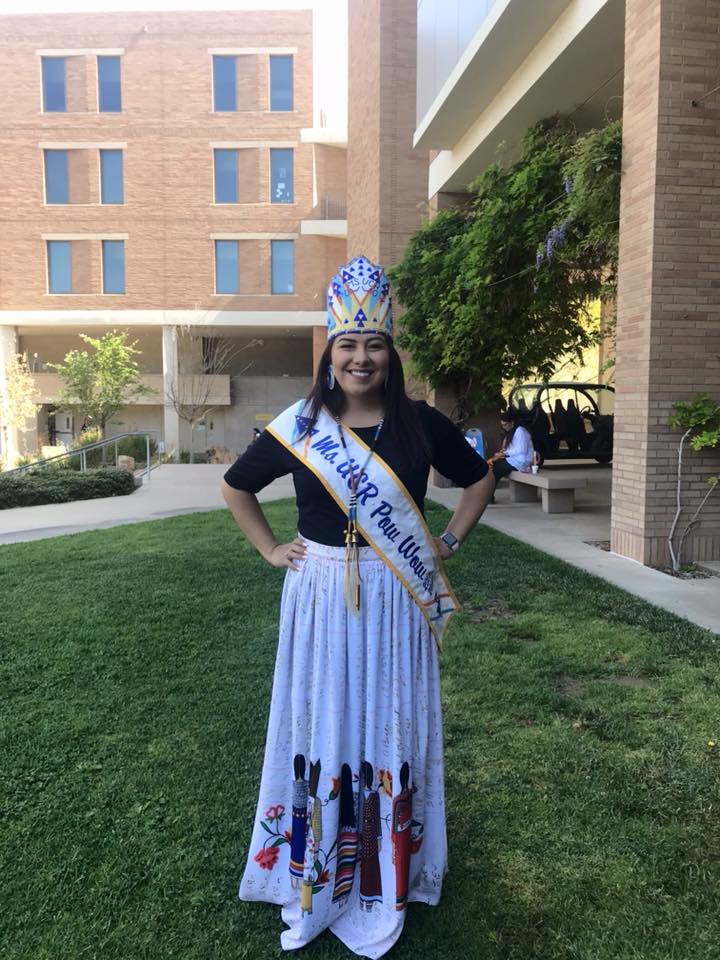 Warren, a 20-year-old college student from Antelope Valley, is the second Pow Wow Princess representing the University of California, Riverside at regional and national powwow gatherings. Warren has held many titles, but UCR is the first university princess title she has captured. This Native American princess was selected by a committee created by UCR’s Native American Student Programs, known as NASP, which provides leadership opportunities for young Native women.