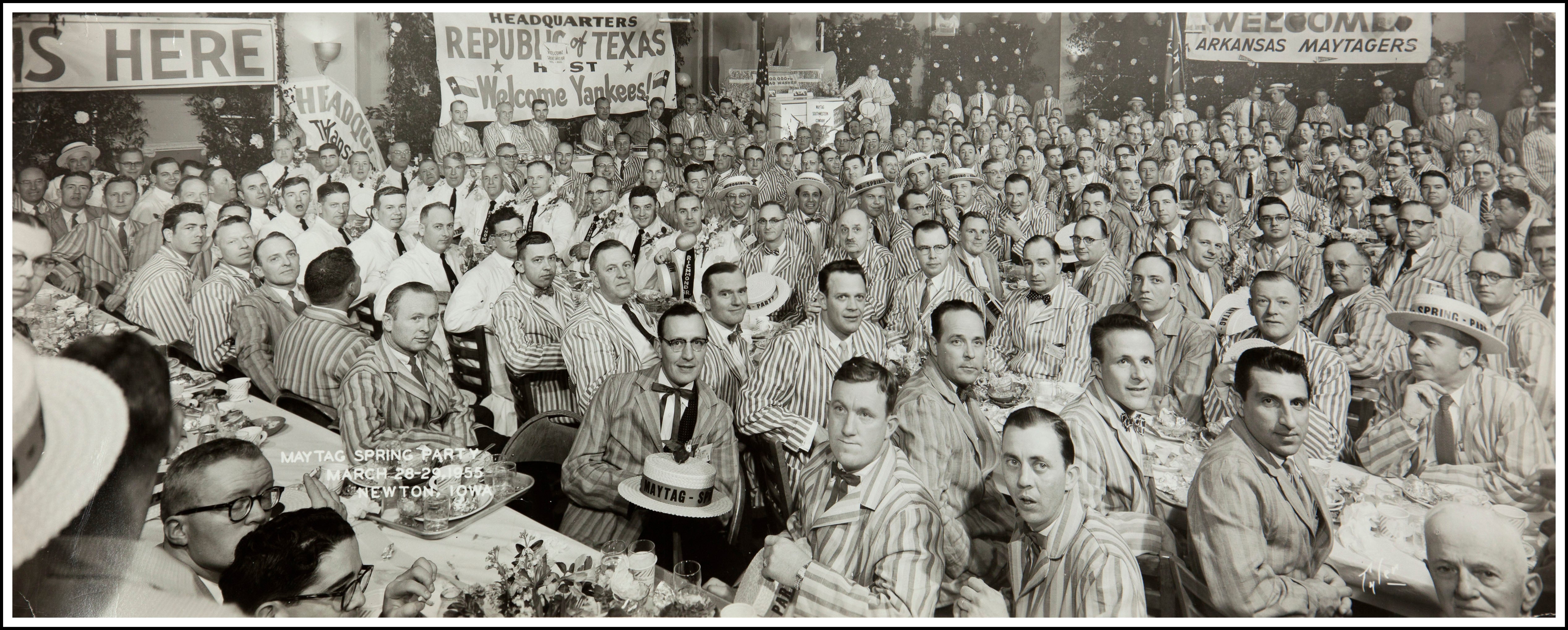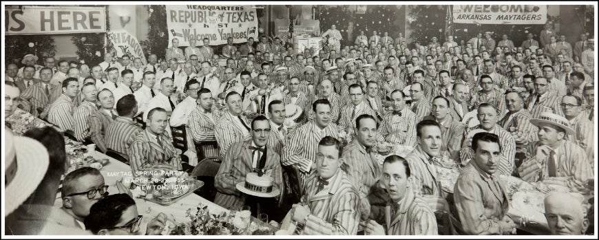 He then began collecting similar banquet-style images including company gatherings for Coca-Cola, Buick Motor Company, and General Electric employees as well as conventions for cheese makers, horseshoers, and astrologers, among others. All the images in his collection are original photographic prints and serve as signifiers of decades passed.