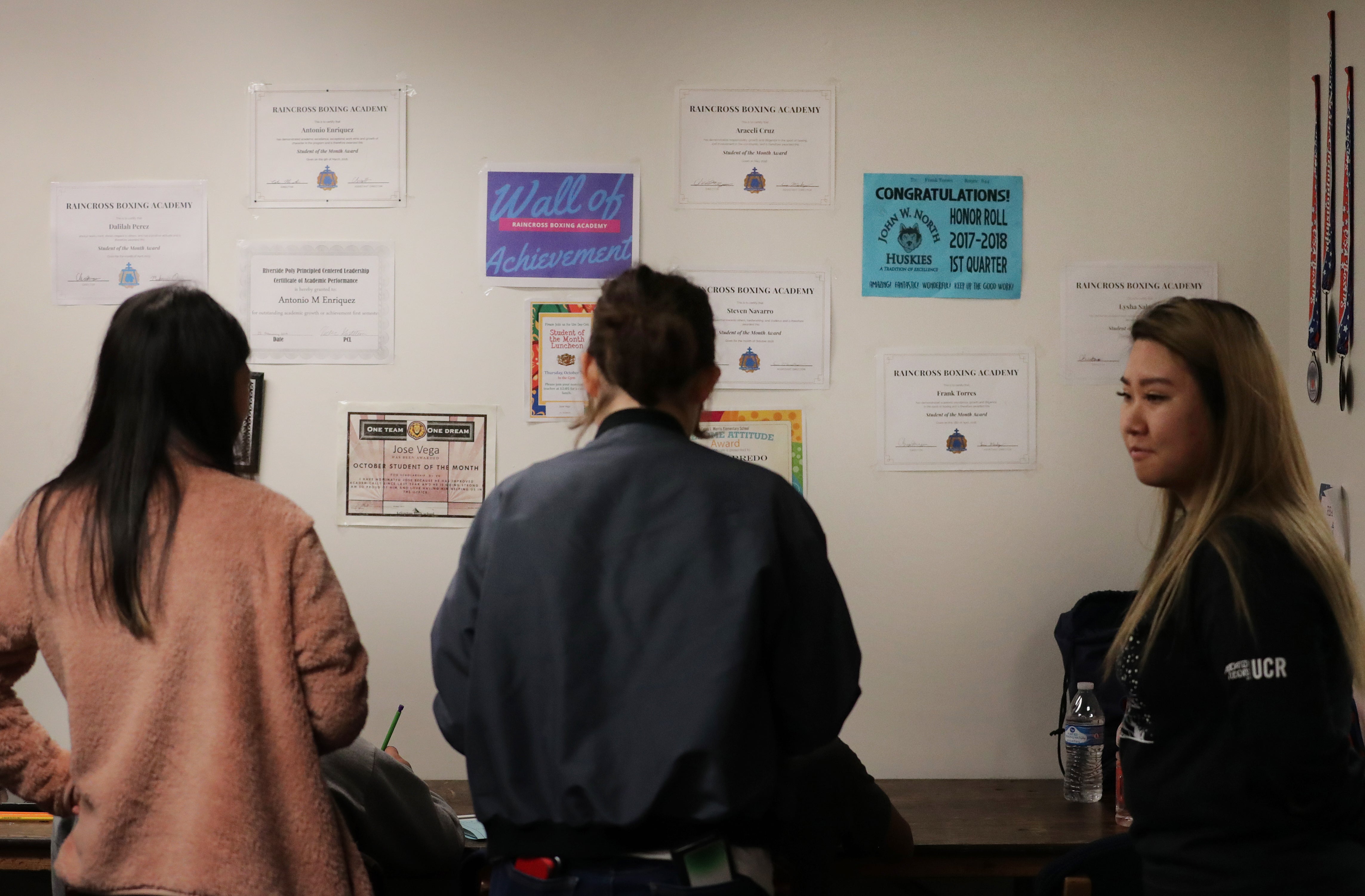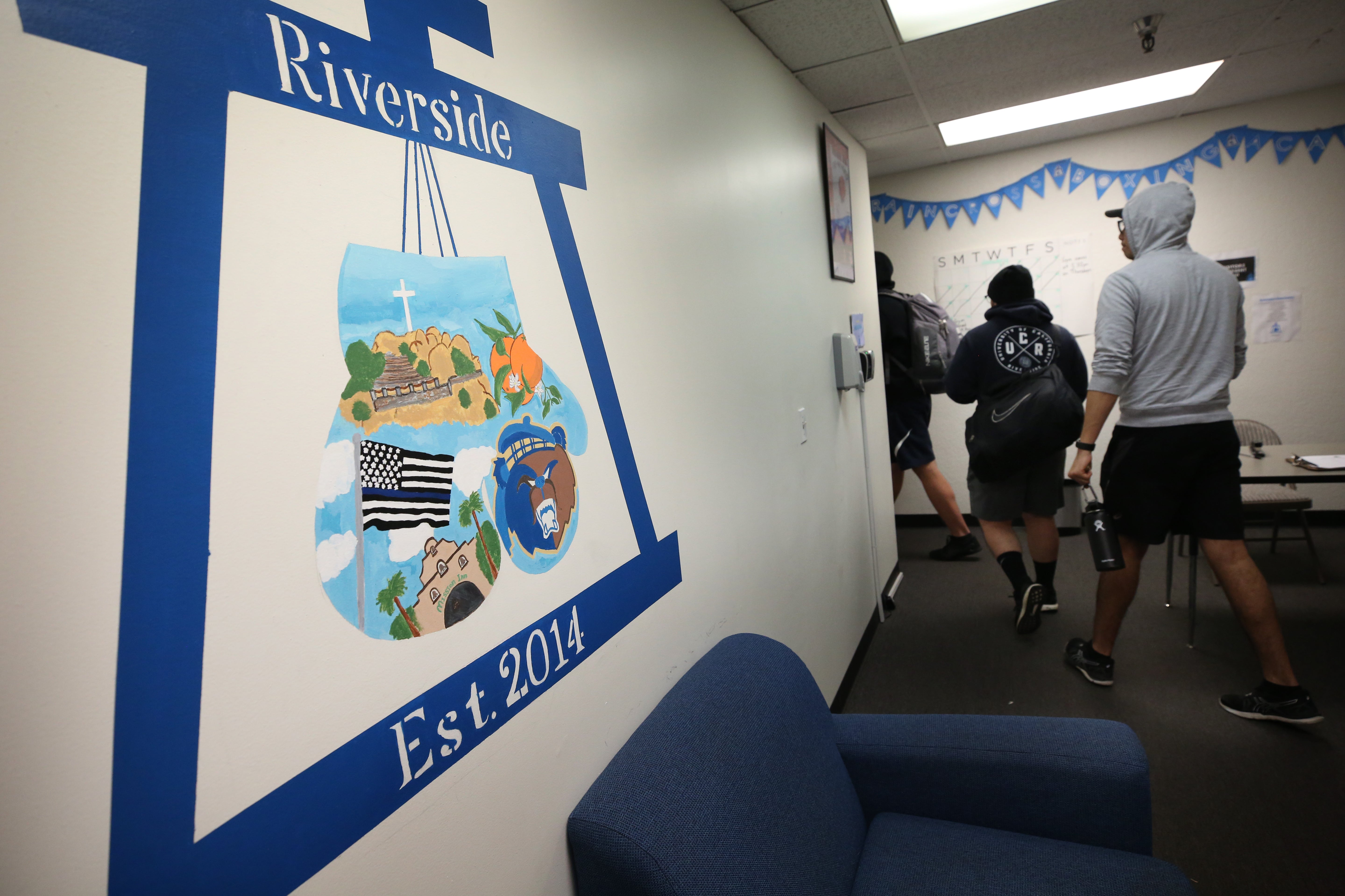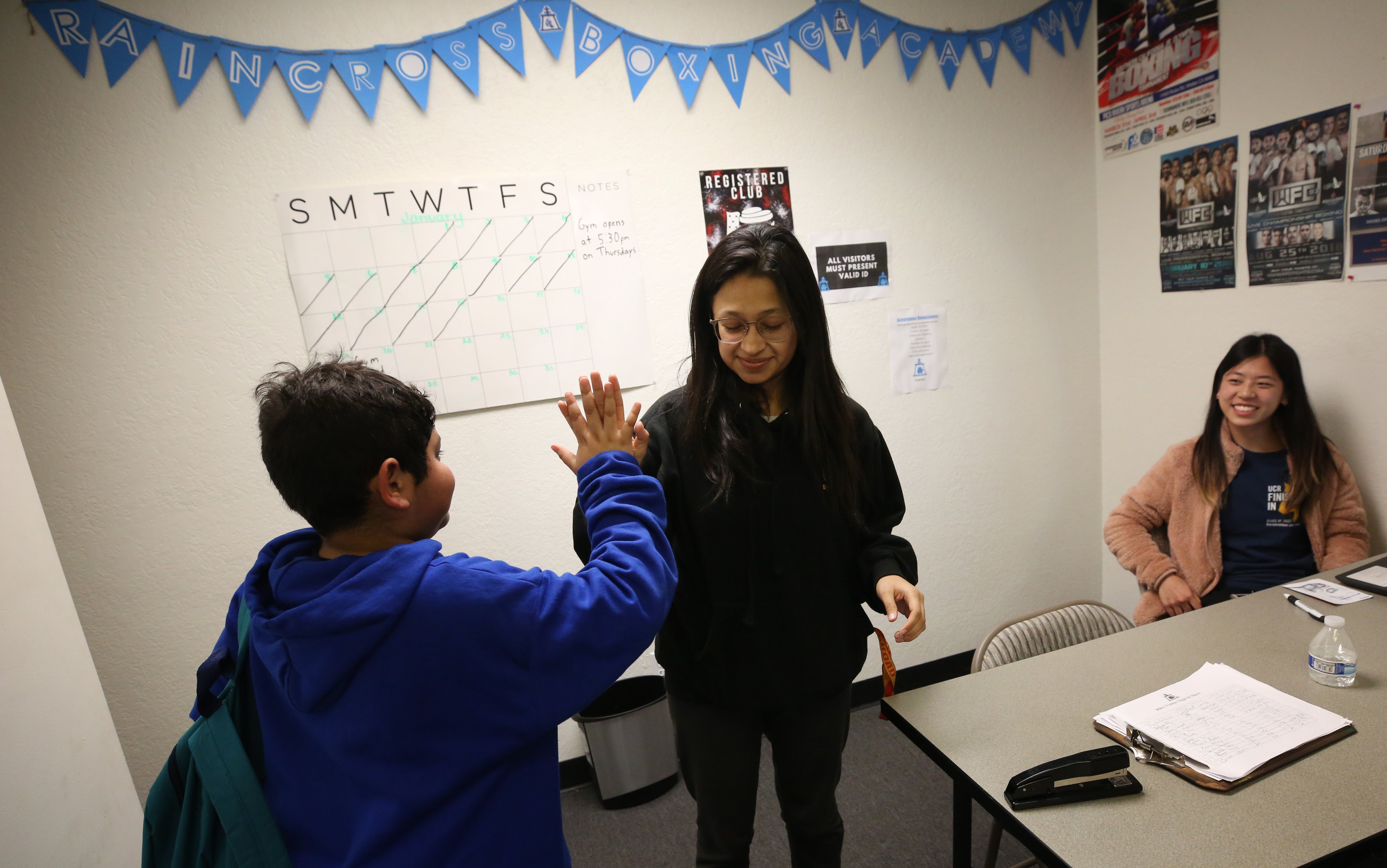 Garza moves quickly from the front of the gym where students sign-in to the homework room, and eventually to the gym where students either hit the bags or work with head trainer and UCR alumnus Jose Jimenez, ’14.