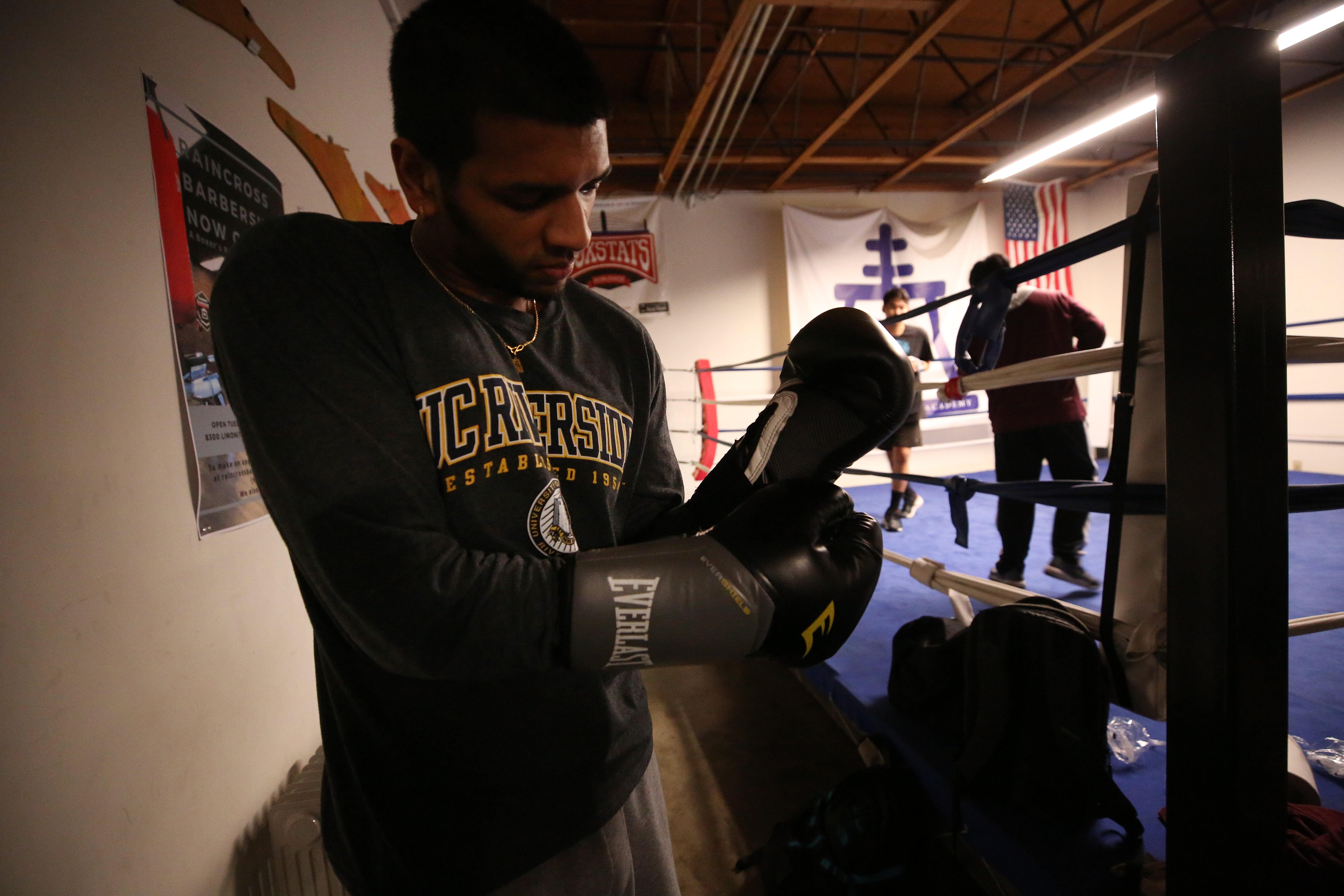 Until his second year in high school, Garza had focused on school and playing video games. Then he discovered Raincross Boxing Academy, an afterschool program in Riverside’s Eastside community. Now 21 and a third-year student at the University of California, Riverside, Garza spends all his free time volunteering at Raincross.