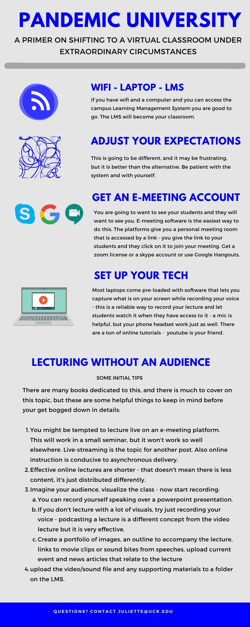 As the spread of coronavirus has driven more and more colleges and universities online, Levy has turned to Twitter. Her online-education best practices for educators and students alike can now be found in a series of infographic guides she’s titled “Pandemic University” — but that’s not all she had to say about navigating the transition to online learning.