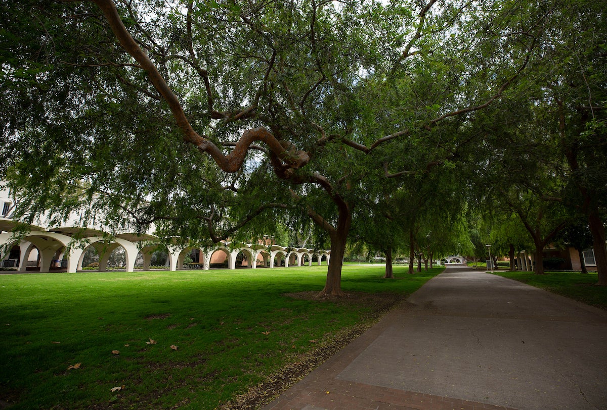 View of pathway near Rivera Library with no people.