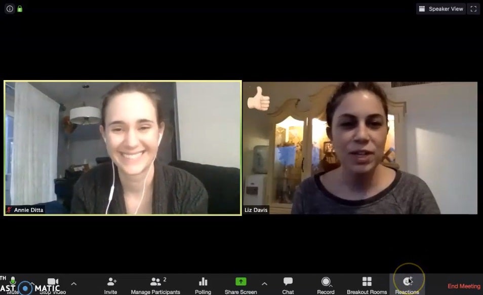 Soon, Davis acknowledged, she and Ditta will have to come up with a name for the series. For now, she said, their calling card is the opening, which starts with some variation of “Liz and Annie here with the next installment of how to get good at Zoom…”