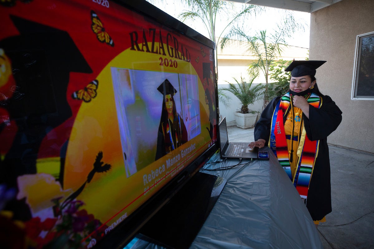 Jacqueline Hernandez Rico, 33, was among the several hundred students who logged into their computers to watch the Raza Grad homage. She watched along with her parents and siblings in Perris on Saturday, June 13.
