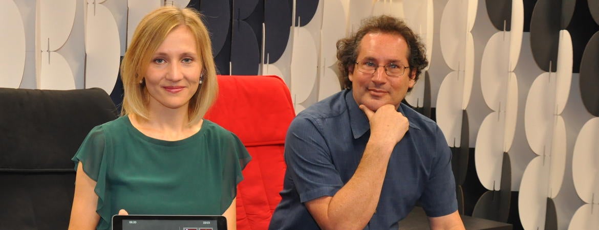 Header image shows Anja Pahor (left) and Aaron Seitz. (UCR/I. Pittalwala)