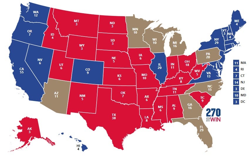 Of course, as two presidential elections in recent memory have attested, the popular vote doesn’t ensure winning the necessary 270 electoral votes.