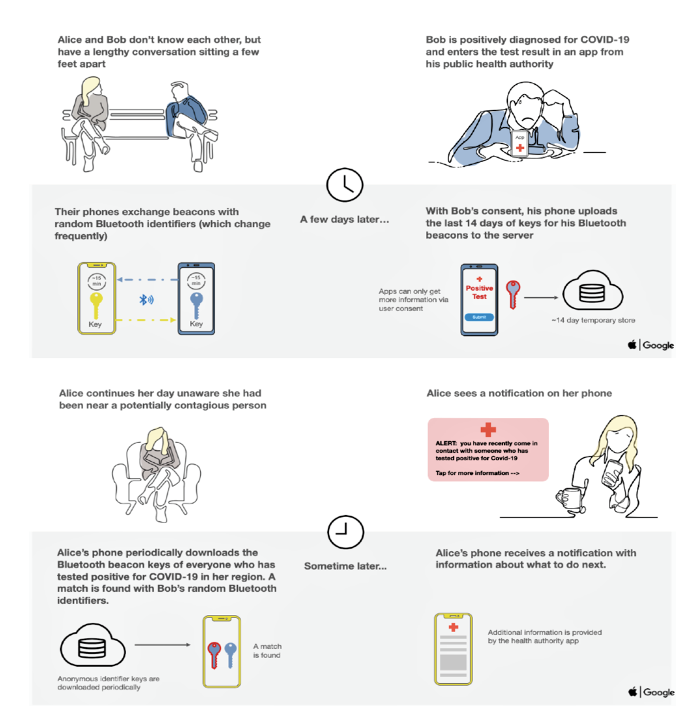 Credit: Google/Apple Exposure Notification FAQ, p. 4, https://covid19-static.cdn-apple.com/applications/covid19/current/static/contact-tracing/pdf/ExposureNotification-FAQv1.2.pdf