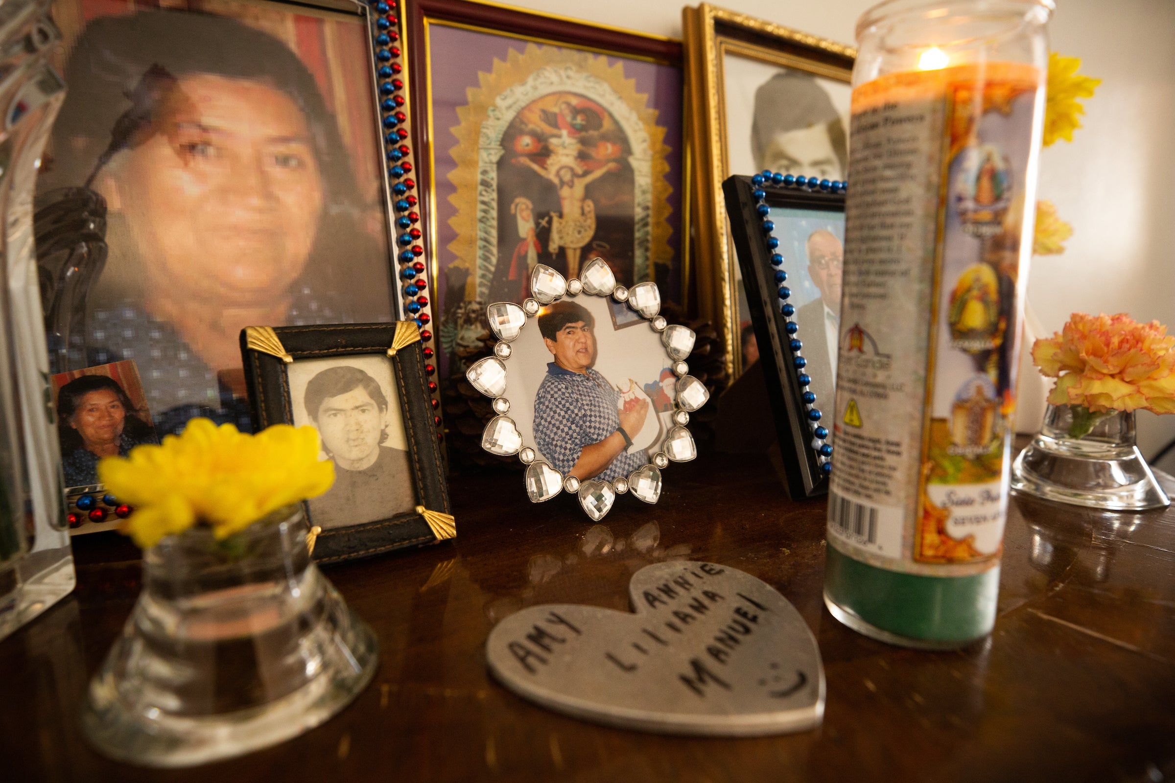 Header Photo: A photo of Manuel Villanueva, center, sits among other family photos as part of a memorial at his family’s home in Reseda. (UCR/Stan Lim)