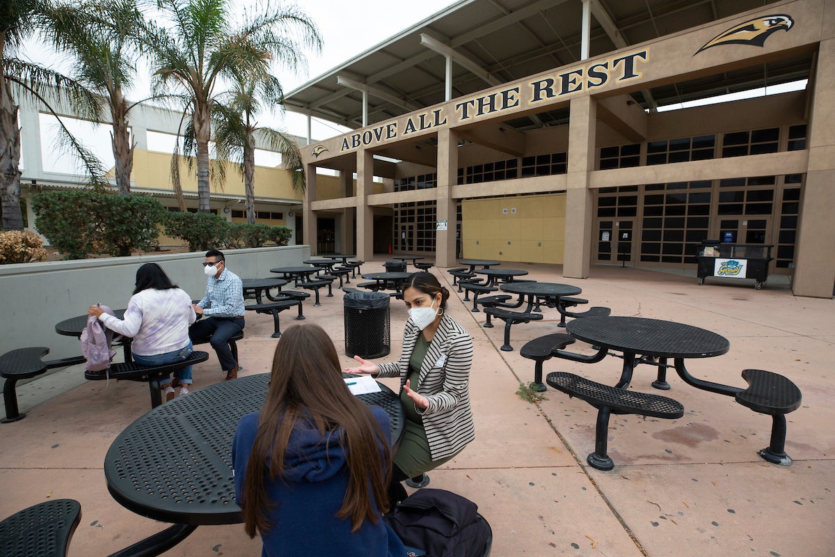 The Educational Talent Search team visits high schools every day. Their day’s calendar is packed with one-on-one meetings with students to review various aspects of their education, including verifying that students are on track to fulfill California State University or University of California course requirements. Among other things, these Educational Talent Search advisors make sure students are staying on top of their grades, provide tutoring when needed, mentoring, and more.