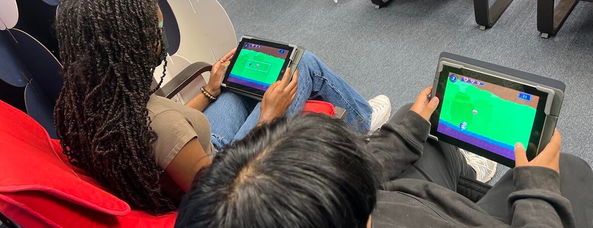 Header image shows participants at the UCR Brain Game Center playing a working memory training game. (Audrey Carrillo)