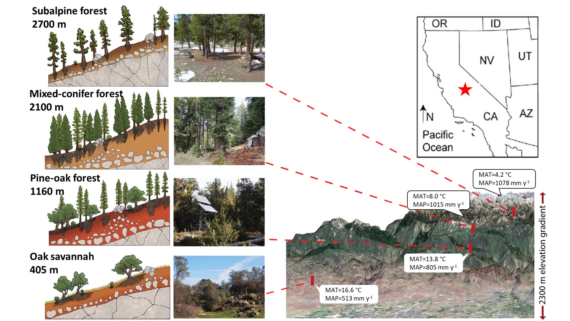 Dust samples were collected at four Critical Zone Observatory network sites in the Sierras, at elevations ranging from 400 to 2,700 meters. The researchers suspect microbes steadily fell out of the dust as they traveled, which may be why fewer types of bacteria and fungi were found at the top than at the base of the mountains.
