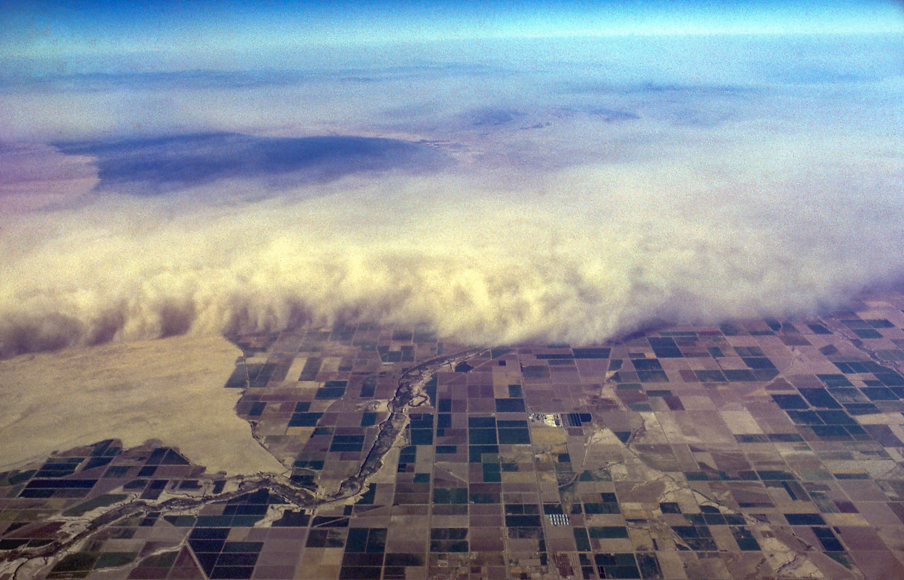 Header image shows an aerial view of a dust storm overrunning the Imperial Valley, California. The Salton Sea can be seen upper left. (NNehring/Getty Images)