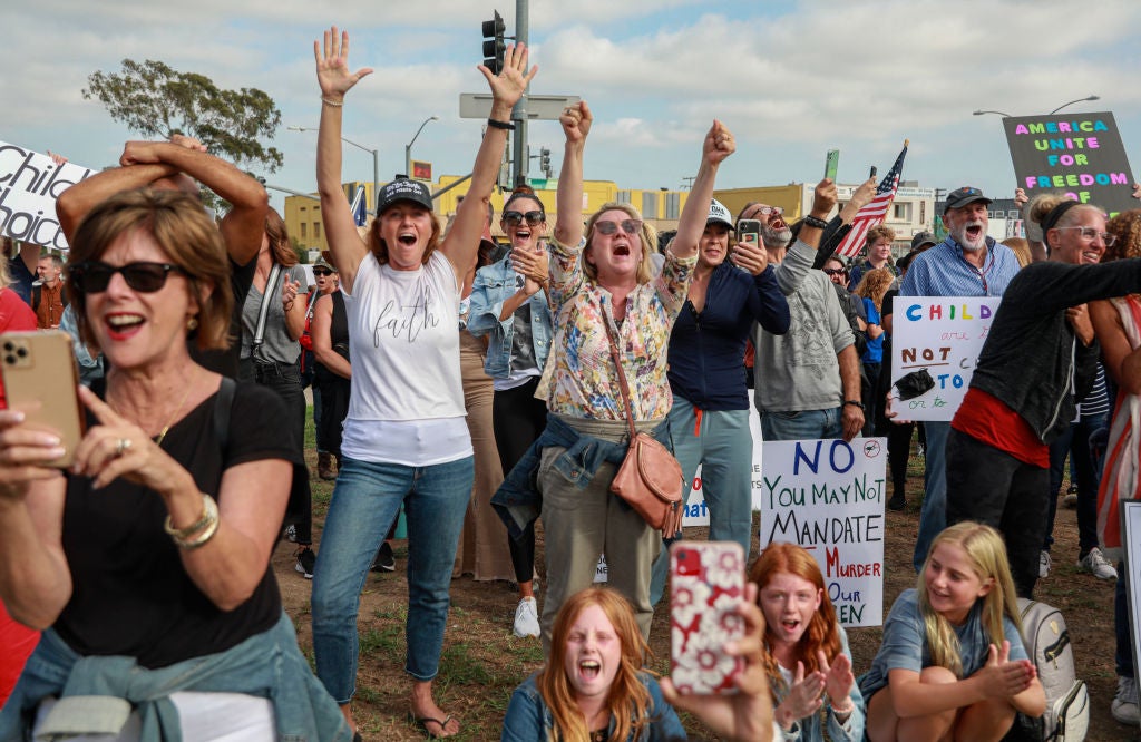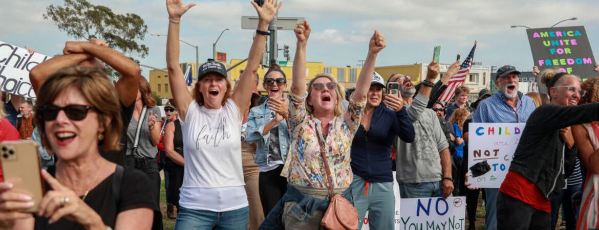 (Header photo: School protesters outside of the San Diego Unified School District offices in 2021 by Sandy Huffaker/Getty Images)