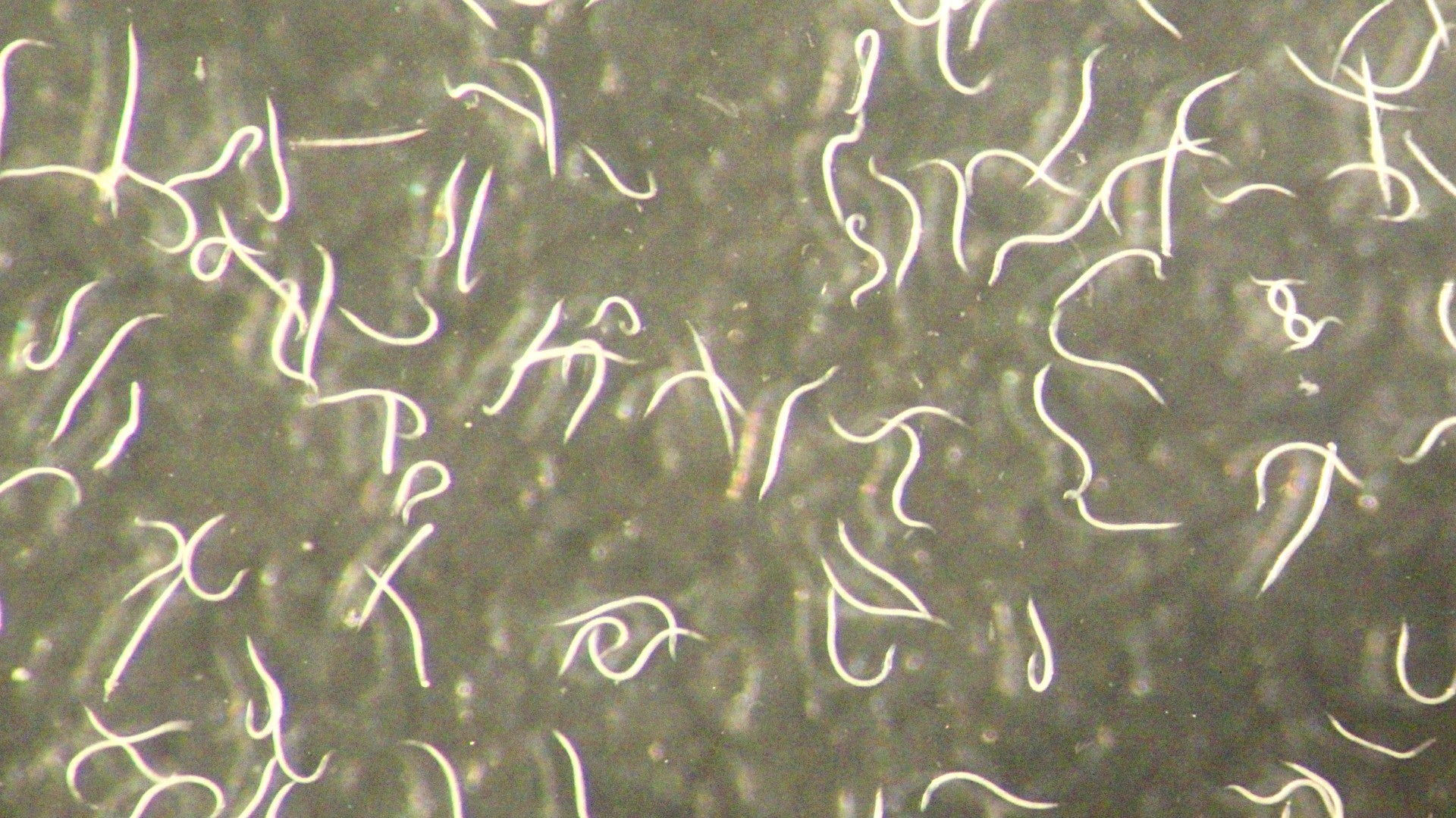 Dillman and his colleagues have now described the new species in the Journal of Parasitology. They are nearly invisible to the naked eye, about half the width of a human hair and just under 1 millimeter long. “Several thousand in a flask looks like dusty water,” Dillman said.