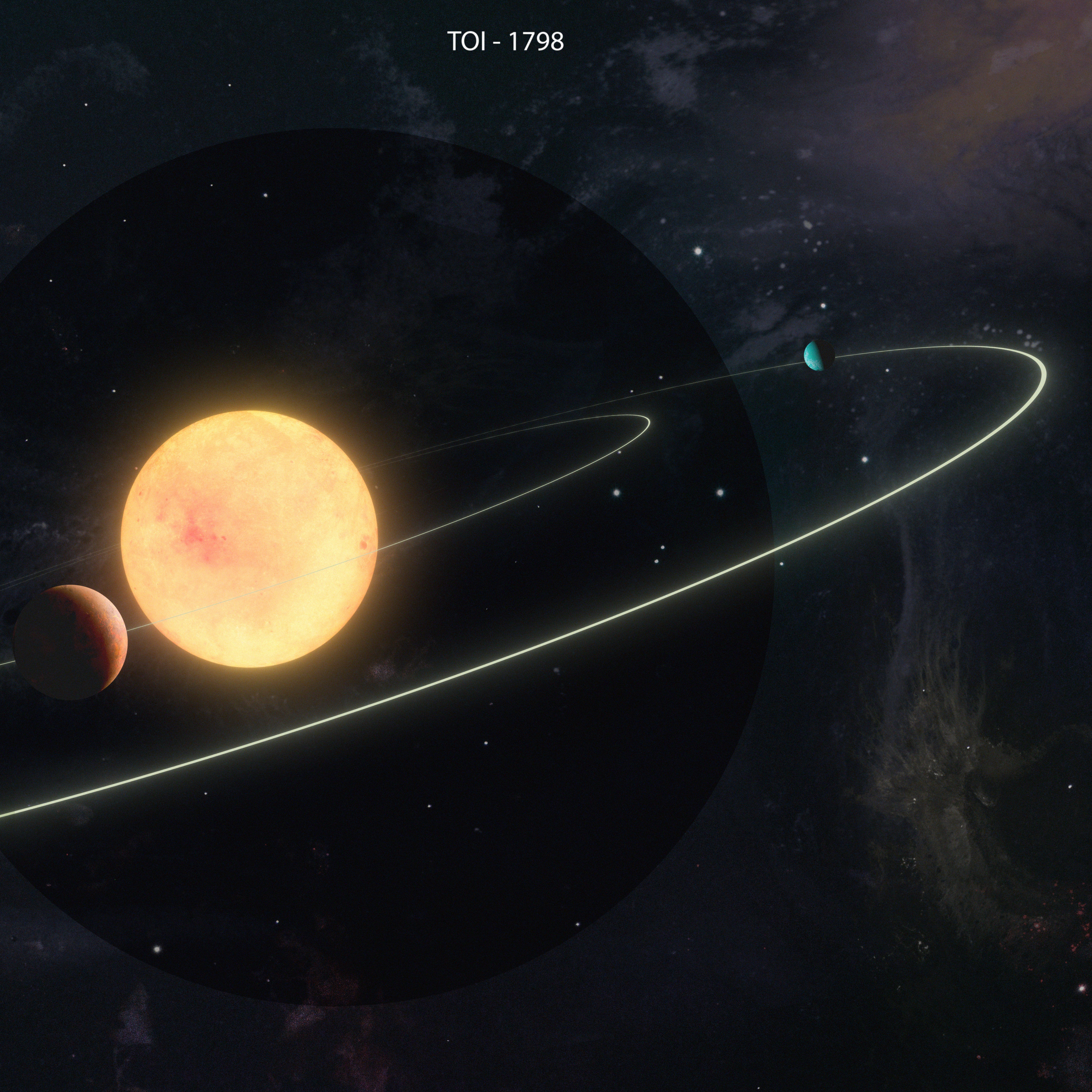 TOI-1386 b only takes 26 days to orbit its star. Meanwhile its neighbor, a planet with a mass close to that of Saturn, takes 227-days to orbit the same star.