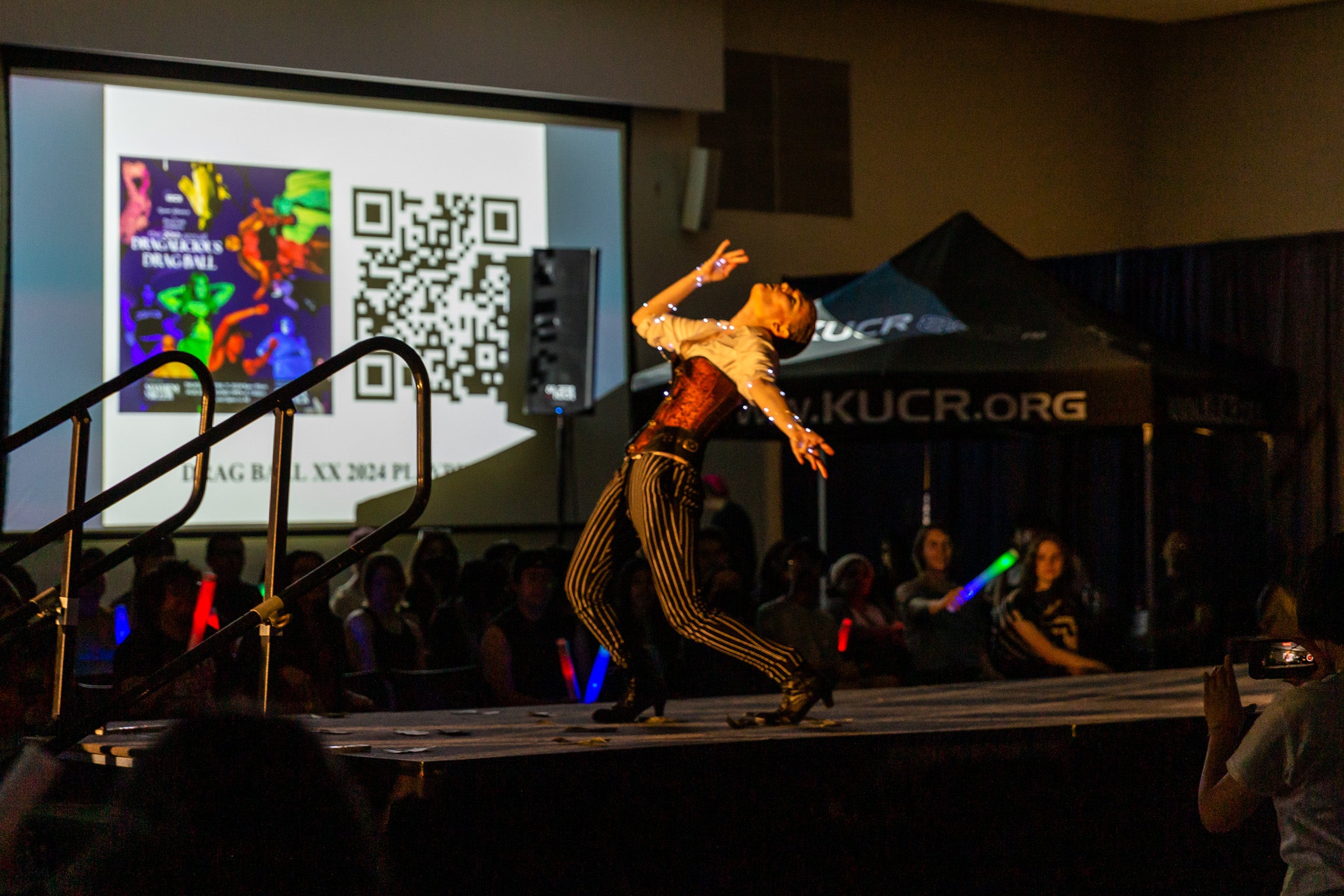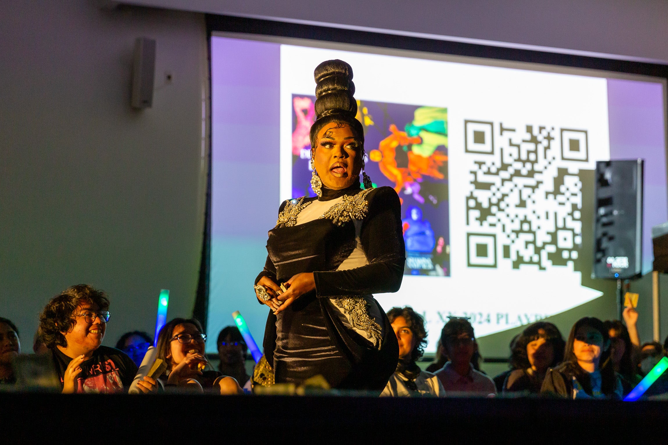 Over 250 LGBTQ+ supporters filled UC Riverside’s HUB 302 on the evening of April 12 to watch 11 student drag performers work the Dragalicious Ball runway. Leading the pack of student performers was RuPaul’s Drag Race superstar and native Riversider Mayhem Miller.