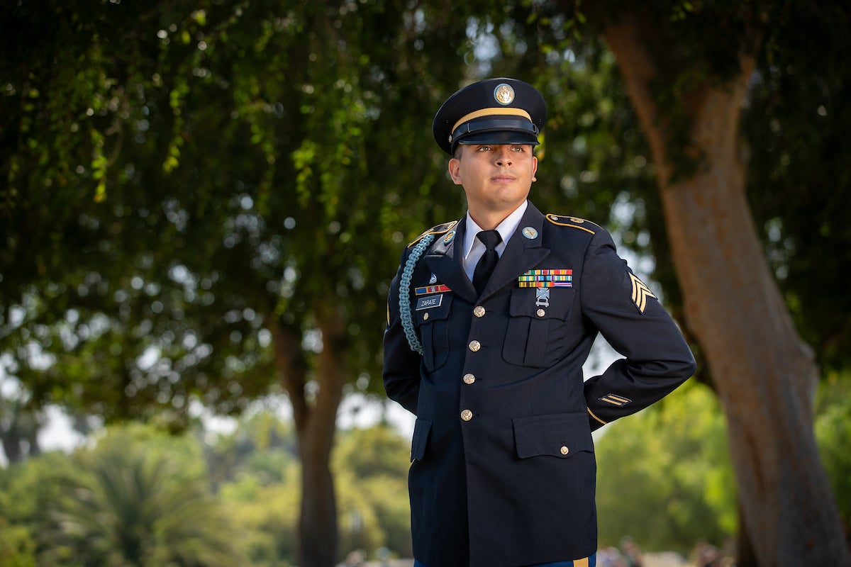 The remainder of his days are filled with classes for his doctoral degree at UC Riverside, leading meetings as president of UCR’s national political science honors society or working as a graduate student assistant. Currently Zárate also volunteers with UCR’s Reserve Officer Training Corps, or ROTC, learning how to be an officer and help cadets improve their socialization as soldiers in the U.S. Army. Occasionally he also joins his Honor Guard colleagues who volunteer at military funerals at Riverside National Cemetery.