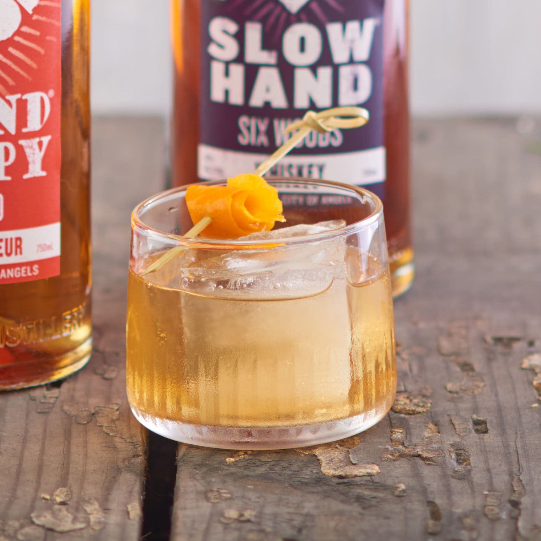 Greenbar’s whiskey is aged with six different woods. And the poppy amaro, made with California poppy, was inspired by our walks in the local hills. Made with just these two ingredients, “Walk in the Woods” is very easy to execute and has the appeal of a classic cocktail, with a distinct, California twist.
