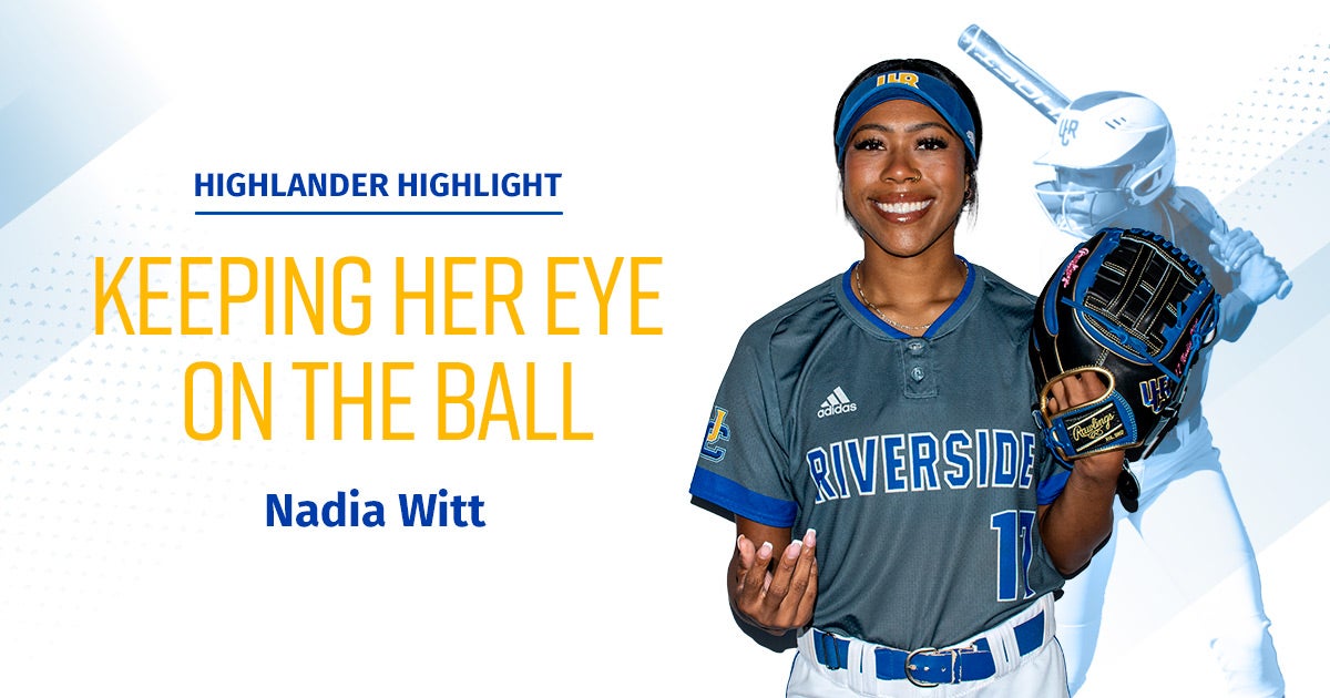 F or outfielder Nadia Witt, softball is more than just a game. Originally from Oregon, she recalls spending much of her early childhood in the field, watching her parents Kevin and Martha play slow-pitch softball. She began playing softball herself when she joined Little League at 9 years old and credits the sport with making her the person she is today. Witt joined the UCR softball team as a freshman and now serves as team captain while navigating her first year as a graduate student. The second in her family to earn a bachelor’s degree, Witt graduated from UCR in 2022 as an ethnic studies major and is working toward a master’s in business administration. As a Black woman in a predominately white sport, she hopes to be an example for other students. She aims to pursue a career in athletics as a sports agent, using her knowledge and skills to provide more opportunities for athletes and making sports a more inclusive and welcoming space, especially for other women of color.
