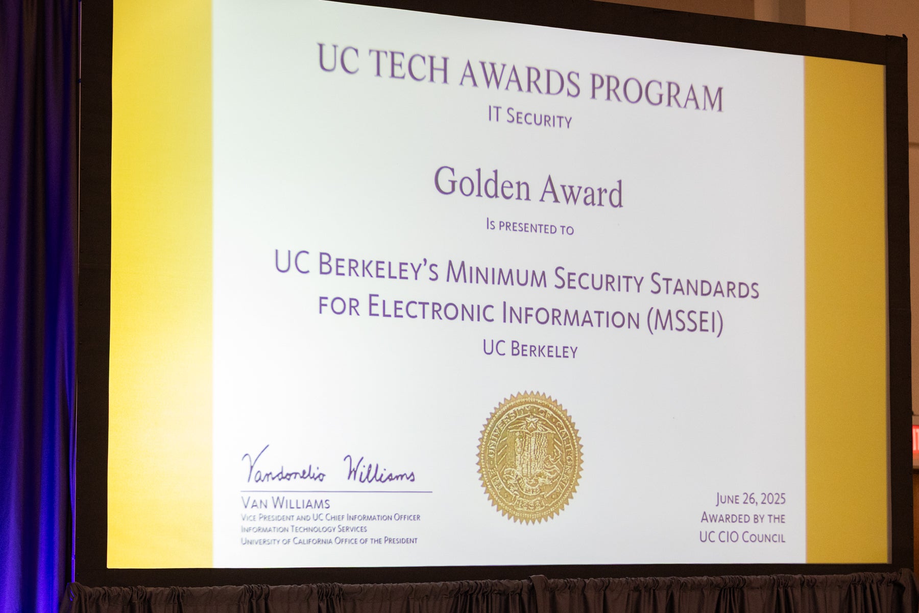 Enjoy the photo gallery of this year's UC Tech Awards, held on Thursday, June 26. We celebrated two individuals and 12 teams from across the UC system. It was a wonderful evening, filled with inspiration and a powerful reminder of the impact our IT community makes. Congratulations to all the winners! Learn more about this year’s awardees.